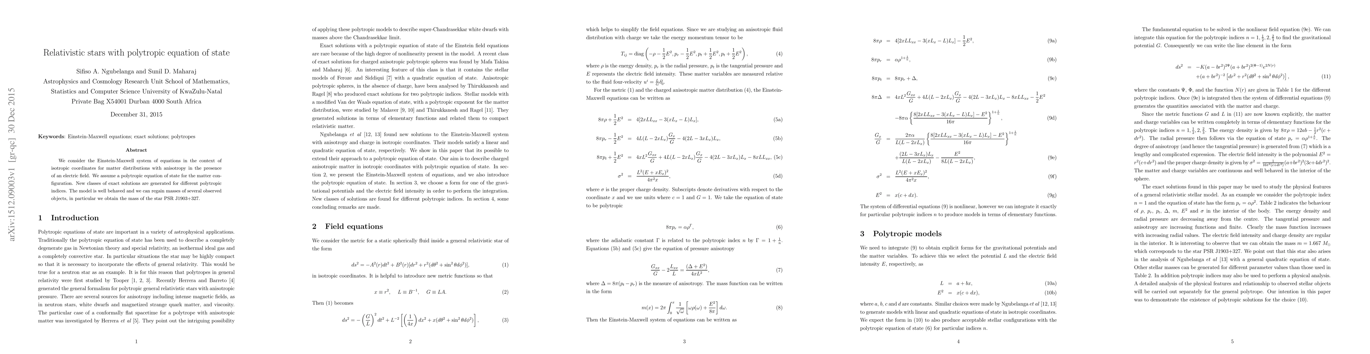Researchers created a new model of stars with an electric field that accurately reproduces the mass of several observed objects, including PSR J1903+327, using a polytropic equation of state.