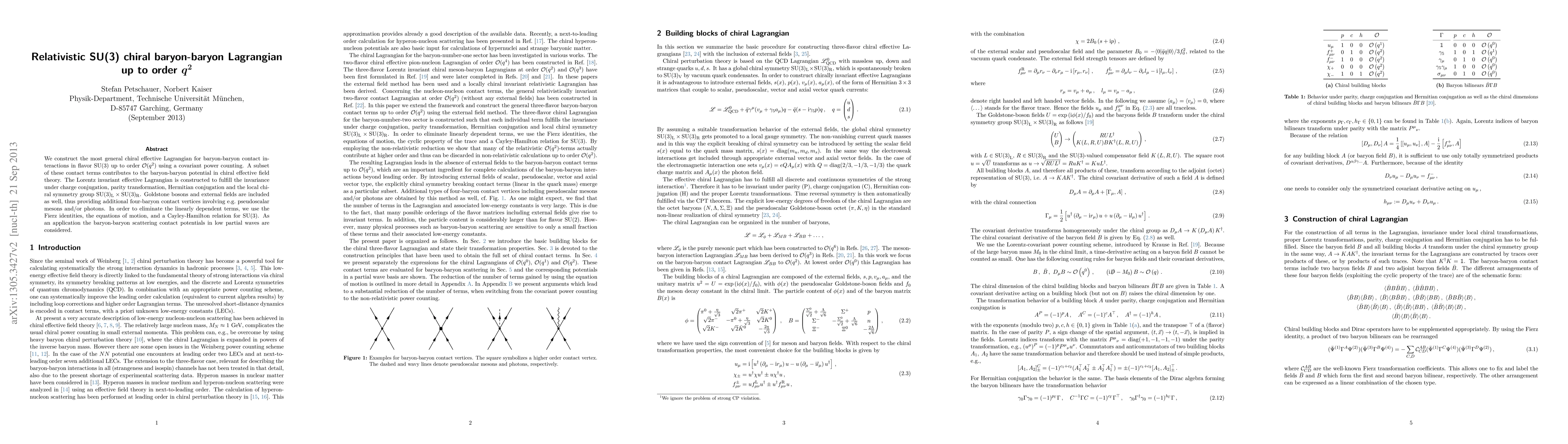 This paper constructs a relativistic SU(3) chiral baryon-baryon Lagrangian up to order q^2, ensuring invariance under charge conjugation, parity, and chiral symmetry. It eliminates redundant terms and applies the resulting Lagrangian to calculate baryon-baryon scattering potentials in low partial waves.