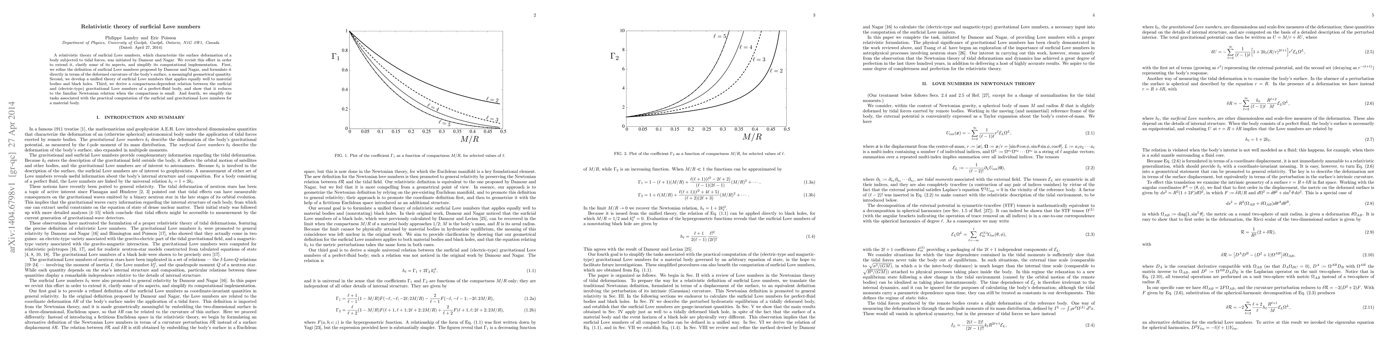 A relativistic theory of surficial Love numbers, which characterize the surface deformation of a body subjected to tidal forces, was initiated by Damour and Nagar. We revisit this effort in order to extend it, clarify some of its aspects, and simplify its computational implementation. First, we refine the definition of surficial Love numbers proposed by Damour and Nagar, and formulate it directly in terms of the deformed curvature of the body's surface, a meaningful geometrical quantity. Second, we develop a unified theory of surficial Love numbers that applies equally well to material bodies and black holes. Third, we derive a compactness-dependent relation between the surficial and (electric-type) gravitational Love numbers of a perfect-fluid body, and show that it reduces to the familiar Newtonian relation when the compactness is small. And fourth, we simplify the tasks associated with the practical computation of the surficial and gravitational Love numbers for a material body.