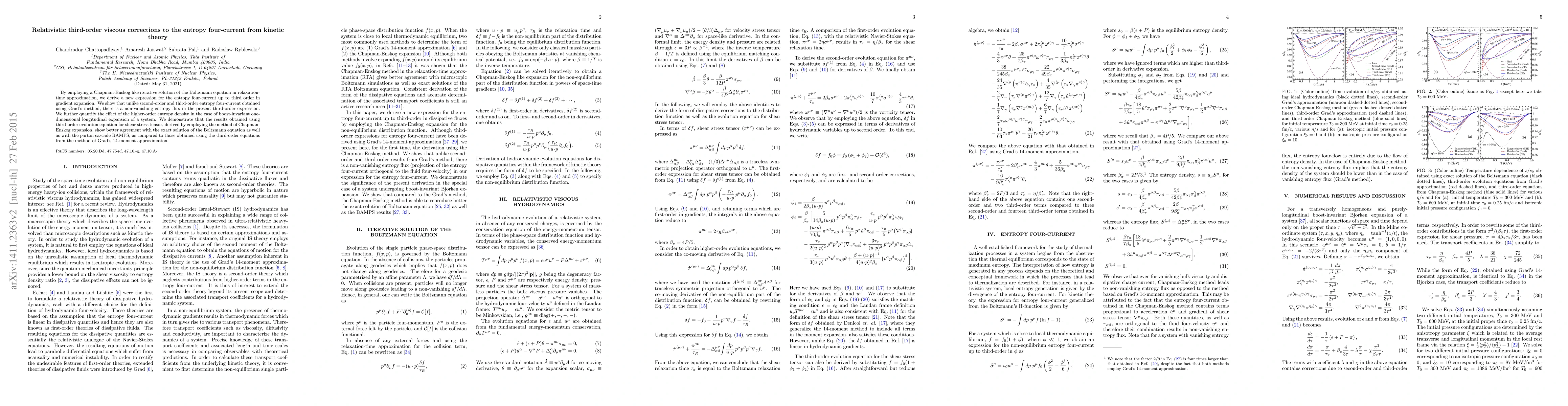By employing a Chapman-Enskog like iterative solution of the Boltzmann equation in relaxation-time approximation, we derive a new expression for the entropy four-current up to third order in gradient expansion. We show that unlike second-order and third-order entropy four-current obtained using Grad's method, there is a non-vanishing entropy flux in the present third-order expression. We further quantify the effect of the higher-order entropy density in the case of boost-invariant one-dimensional longitudinal expansion of a system. We demonstrate that the results obtained using third-order evolution equation for shear stress tensor, derived by employing the method of Chapman-Enskog expansion, show better agreement with the exact solution of the Boltzmann equation as well as with the parton cascade BAMPS, as compared to those obtained using the third-order equations from the method of Grad's 14-moment approximation.