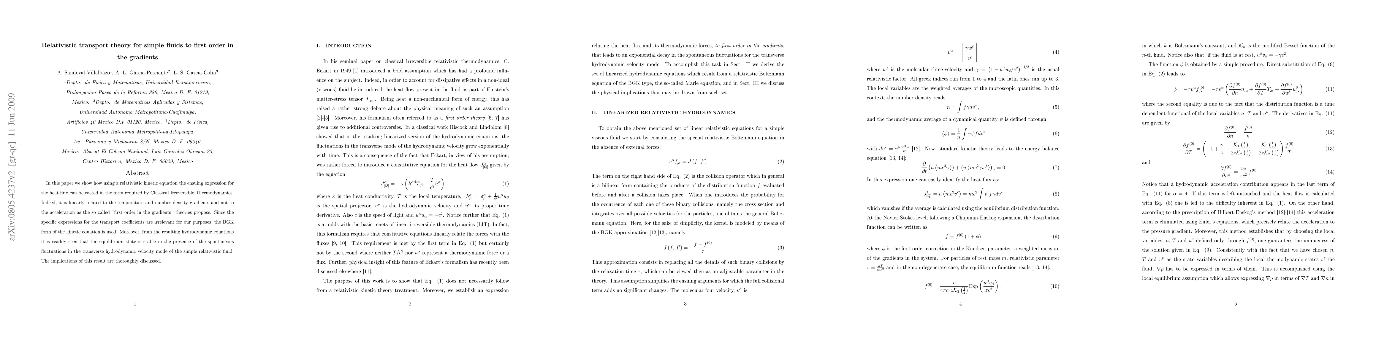 Researchers develop a new relativistic transport theory for simple fluids that is linearly related to temperature and density gradients, showing stability in the presence of spontaneous fluctuations.