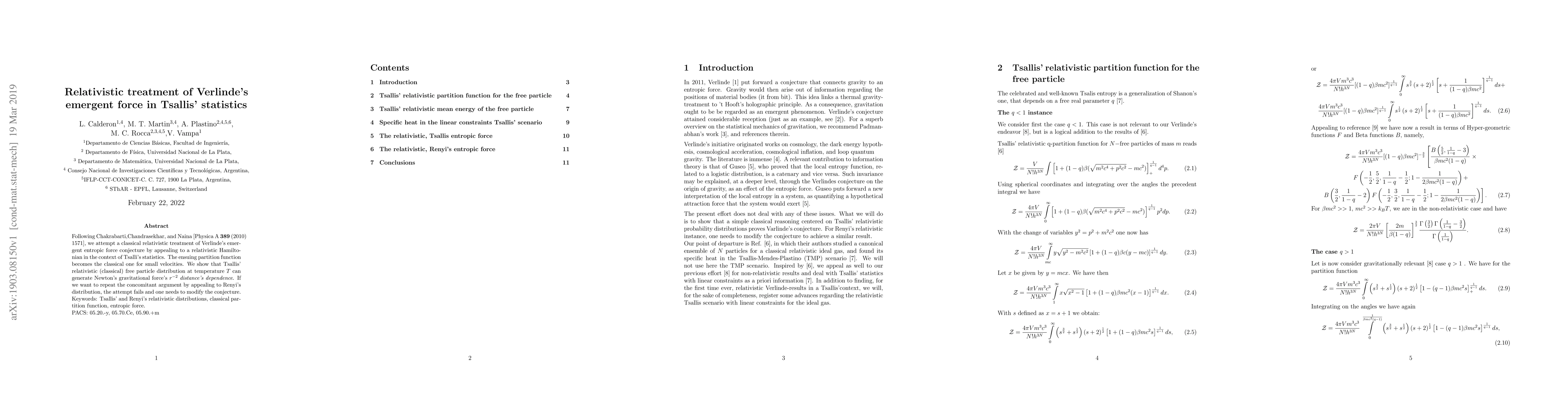 Researchers applied a classical relativistic treatment to Verlinde's emergent force conjecture, finding that Tsallis' statistics can generate Newton's gravitational force's characteristic distance dependence.