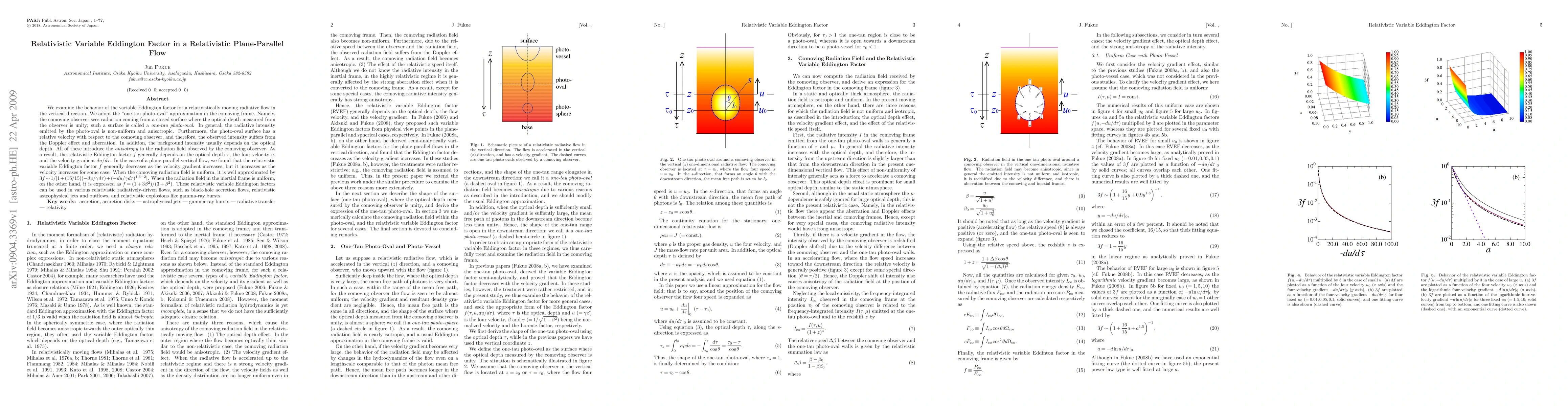 This paper investigates the relativistic variable Eddington factor for radiative flows moving vertically. It finds that the factor depends on optical depth, velocity, and velocity gradient, with the factor decreasing as the velocity gradient increases but increasing with velocity in certain cases. The study provides approximations for the factor under different conditions, useful for modeling relativistic astrophysical phenomena.