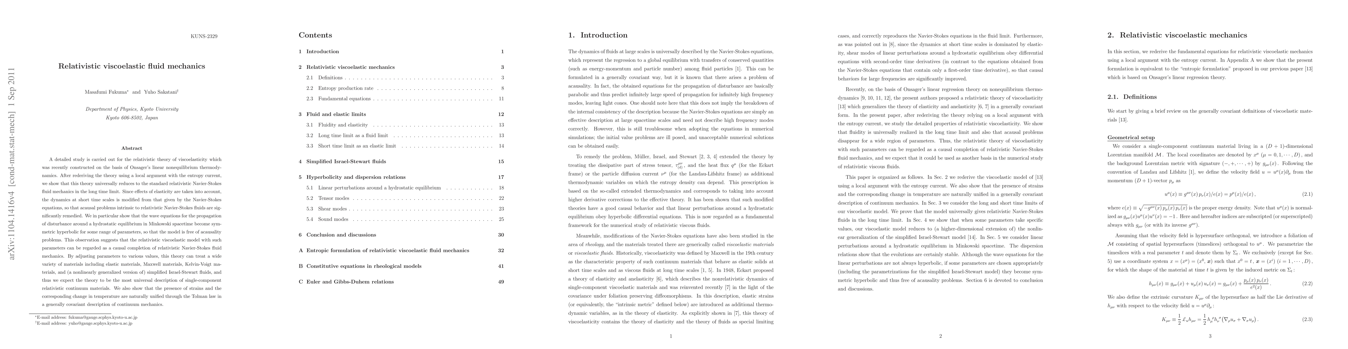 This paper develops a relativistic theory of viscoelastic fluid mechanics based on Onsager's thermodynamics, showing it reduces to relativistic Navier-Stokes in the long time limit. The viscoelastic model remedies acausality issues and provides a causal completion of relativistic fluid mechanics, applicable to a wide range of materials.