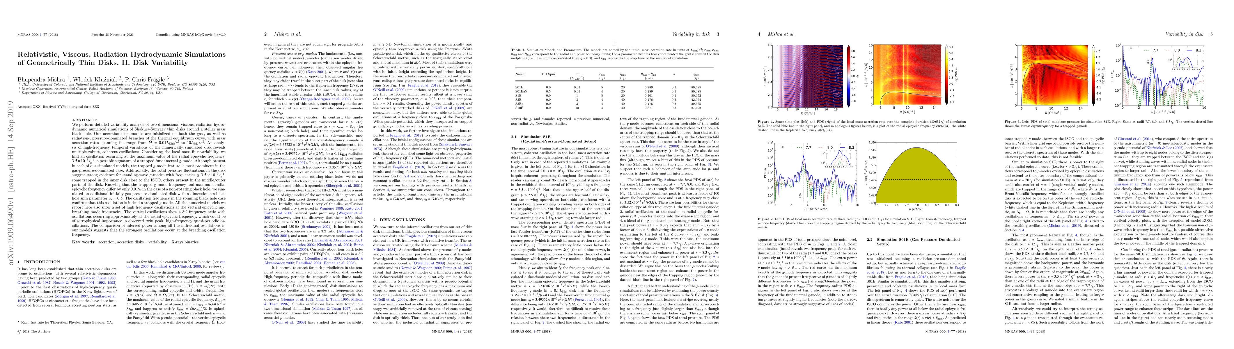 This paper analyzes the variability in relativistic, viscous, radiation hydrodynamic simulations of thin disks around black holes, revealing coherent oscillations linked to trapped ${\it g}$-modes and standing-wave ${\it p}$-modes. The study finds that these oscillations are most prominent in gas-pressure-dominated disks and may contribute to high-frequency quasi-periodic oscillations observed in astrophysical systems.
