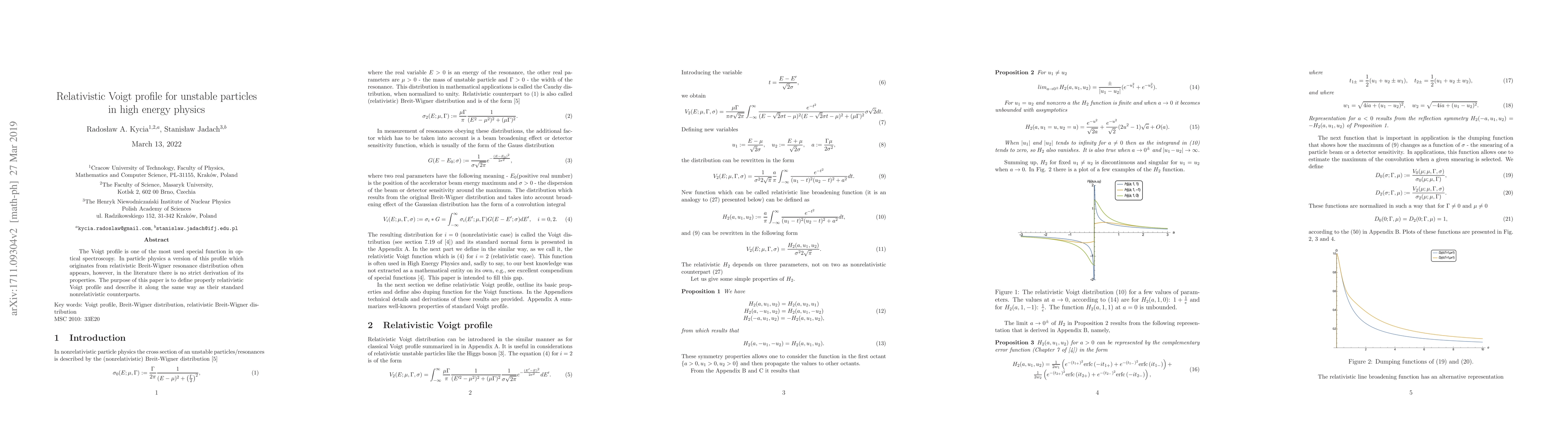 The Voigt profile is one of the most used special function in optical spectroscopy. In particle physics a version of this profile which originates from relativistic Breit-Wigner resonance distribution often appears, however, in the literature there is no strict derivation of its properties. The purpose of this paper is to define properly relativistic Voigt profile and describe it along the same way as their standard nonrelativistic counterparts.