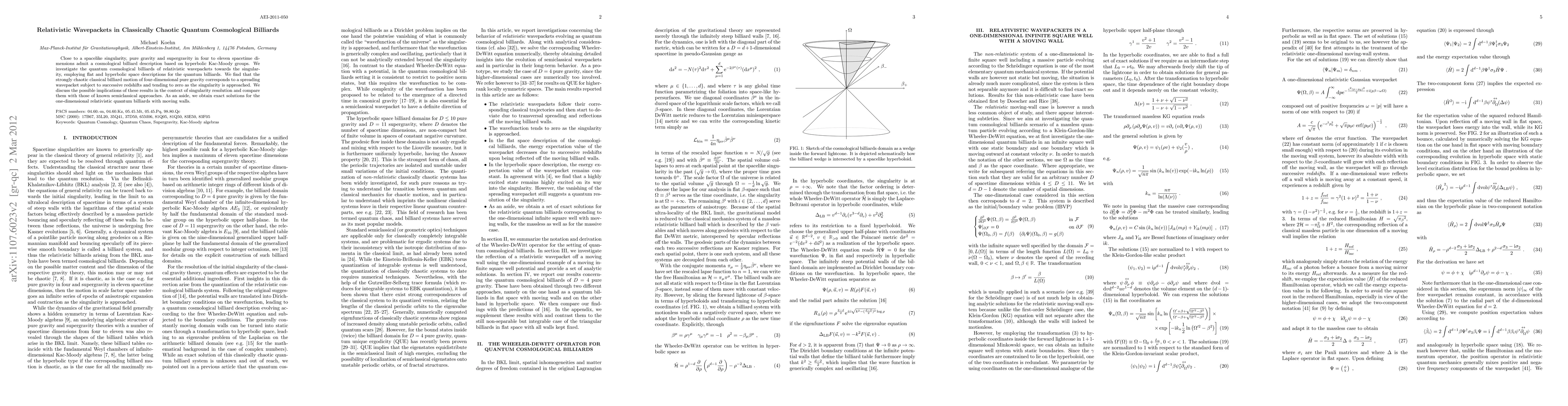 This paper explores relativistic wavepackets in quantum cosmological billiards near a spacelike singularity, finding that the chaotic classical motion leads to wavepacket spreading and redshift, potentially resolving singularities. It also provides exact solutions for one-dimensional relativistic quantum billiards with moving walls.