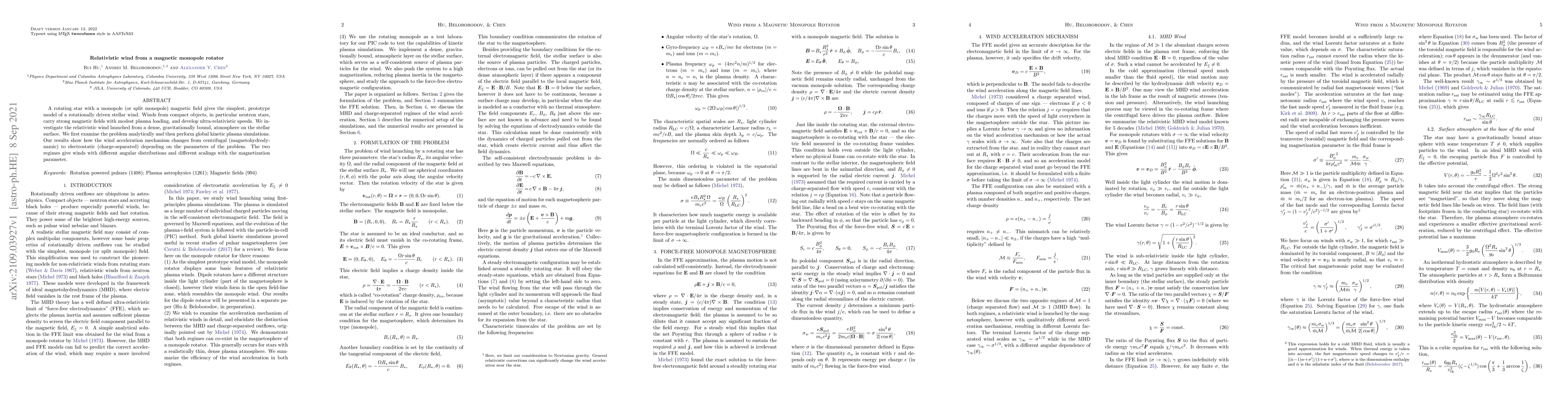 A rotating star with a monopole (or split monopole) magnetic field gives the simplest, prototype model of a rotationally driven stellar wind. Winds from compact objects, in particular neutron stars, carry strong magnetic fields with modest plasma loading, and develop ultra-relativistic speeds. We investigate the relativistic wind launched from a dense, gravitationally bound, atmosphere on the stellar surface. We first examine the problem analytically and then perform global kinetic plasma simulations. Our results show how the wind acceleration mechanism changes from centrifugal (magnetohydrodynamic) to electrostatic (charge-separated) depending on the parameters of the problem. The two regimes give winds with different angular distributions and different scalings with the magnetization parameter.