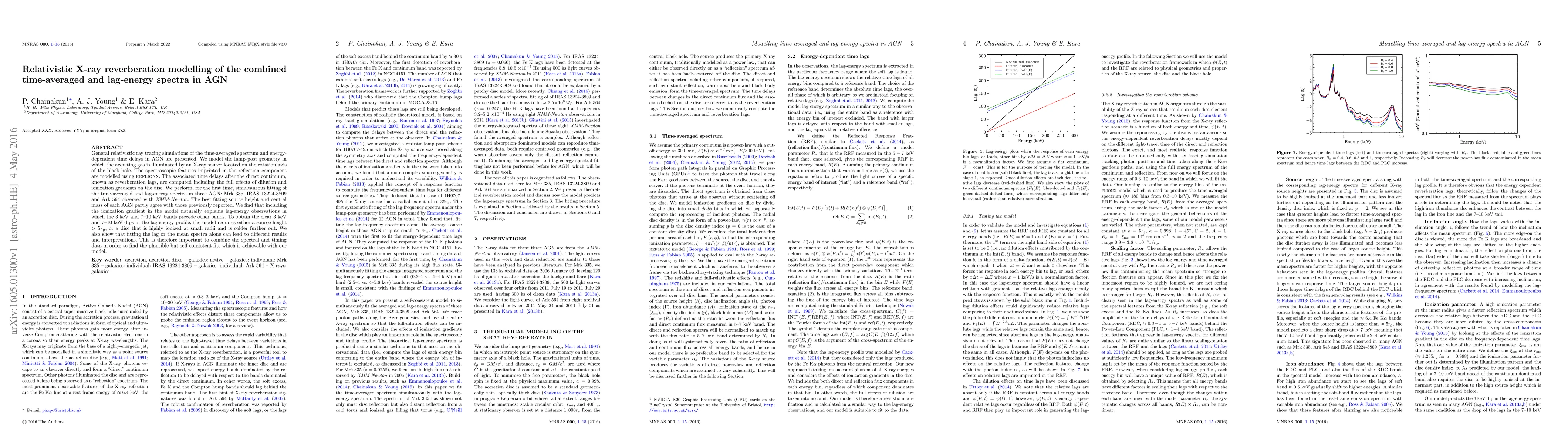 This paper presents relativistic X-ray reverberation modelling for three AGN, using simulations to fit both time-averaged and lag-energy spectra. The study finds that including ionization gradients in the model explains observed lag-energy patterns, emphasizing the importance of combining spectral and timing data for accurate interpretations.