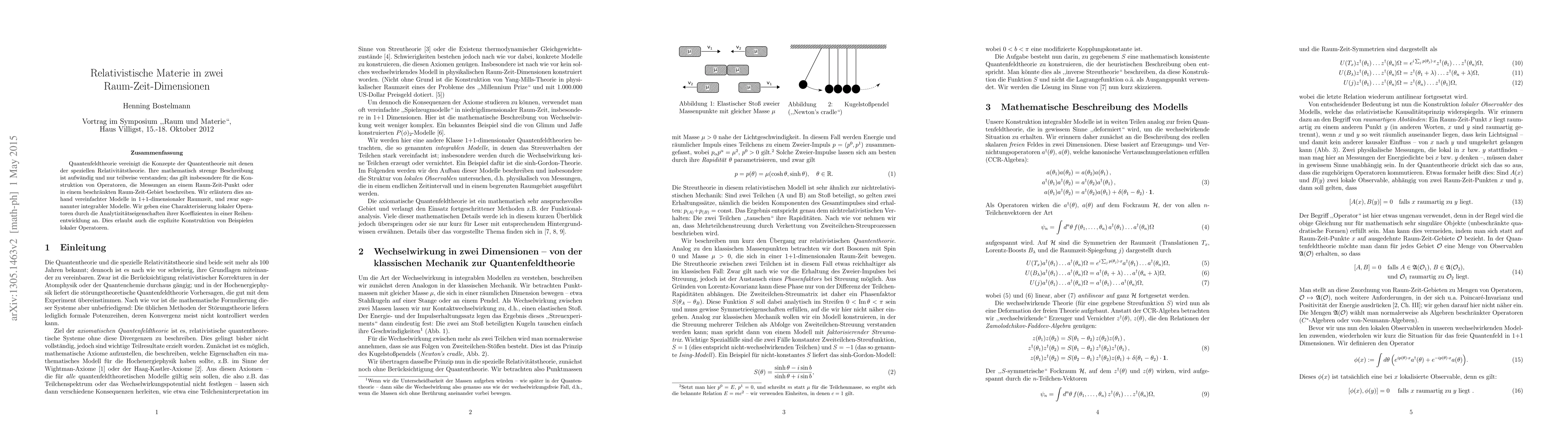 Quantum field theory unifies concepts from quantum theory and from special relativity. Its mathematically rigorous description is quite intricate and is only partially understood; this is particularly true for the construction of operators corresponding to measurements at a space-time point or in a bounded space-time region. We explain this fact in simplified examples on 1+1 dimensional space-time, namely in so-called integrable models. We give a characterization of local operators by means of the analyticity properties of their coefficients in a certain series expansion. This also allows us to explicitly construct examples of local operators.