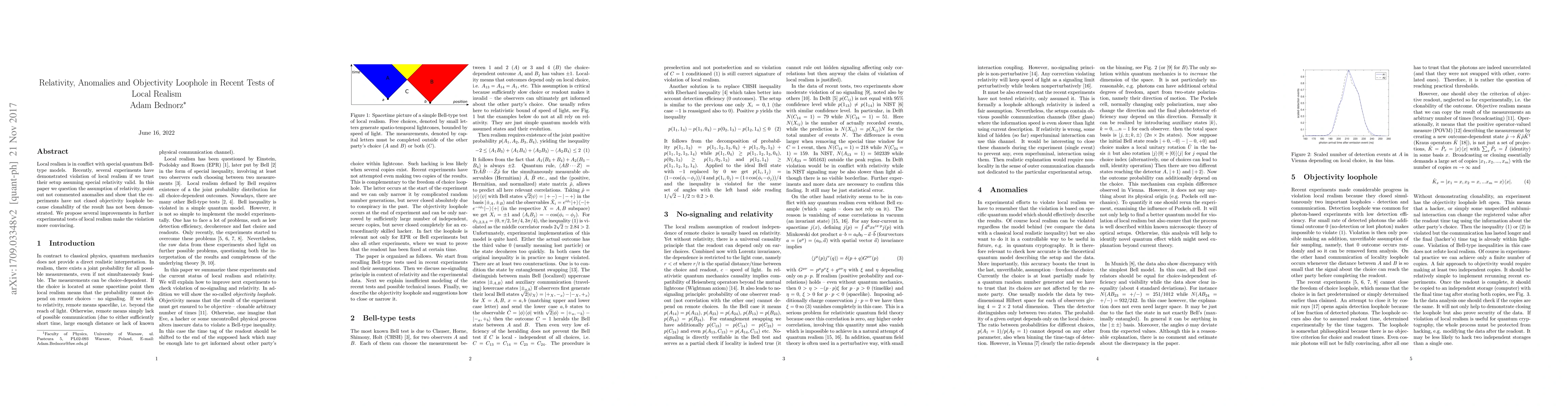 Local realism is in conflict with special quantum Bell-type models. Recently, several experiments have demonstrated violation of local realism if we trust their setup assuming special relativity valid. In this paper we question the assumption of relativity, point out not commented anomalies and show that the experiments have not closed objectivity loophole because clonability of the result has not been demonstrated. We propose several improvements in further experimental tests of local realism make the violation more convincing.