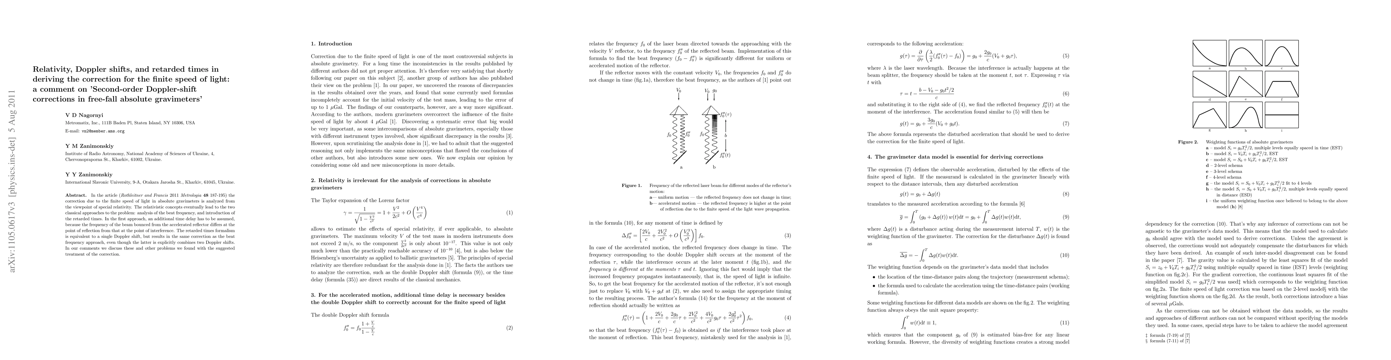 In the article (Rothleitner and Francis 2011 Metrologia 48 187-195) the correction due to the finite speed of light in absolute gravimeters is analyzed from the viewpoint of special relativity. The relativistic concepts eventually lead to the two classical approaches to the problem: analysis of the beat frequency, and introduction of the retarded times. In the first approach, an additional time delay has to be assumed, because the frequency of the beam bounced from the accelerated reflector differs at the point of reflection from that at the point of interference. The retarded times formalism is equivalent to a single Doppler shift, but results in the same correction as the beat frequency approach, even though the latter is explicitly combines two Doppler shifts. In our comments we discuss these and other problems we found with the suggested treatment of the correction.