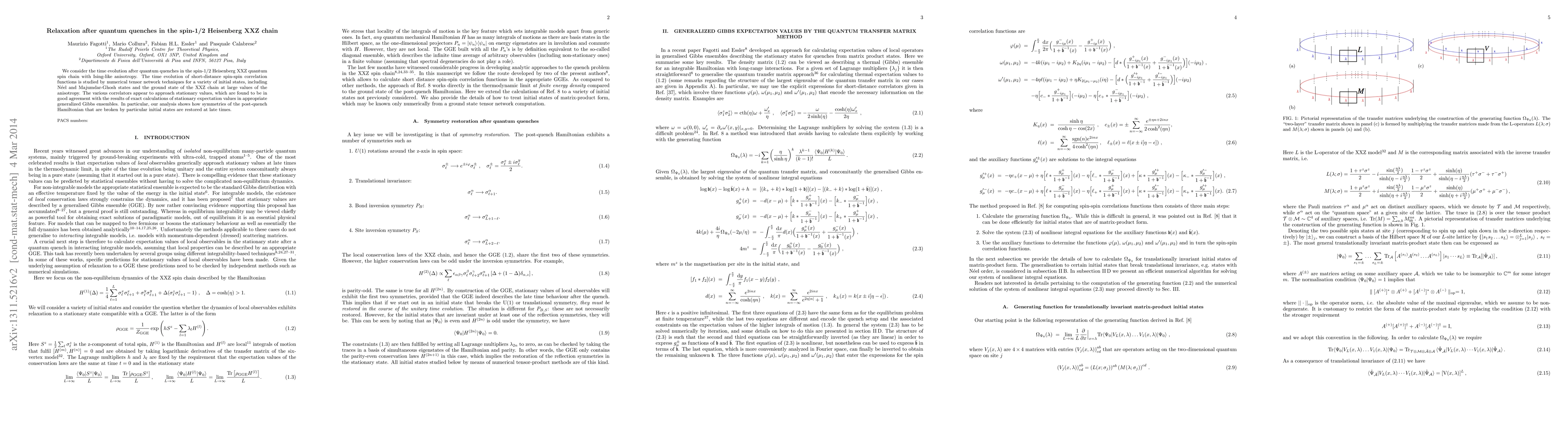 This paper investigates the relaxation dynamics following quantum quenches in the spin-1/2 Heisenberg XXZ chain using tensor network techniques. It finds that short-distance spin-spin correlation functions stabilize to values consistent with exact calculations, demonstrating the restoration of symmetries at late times.