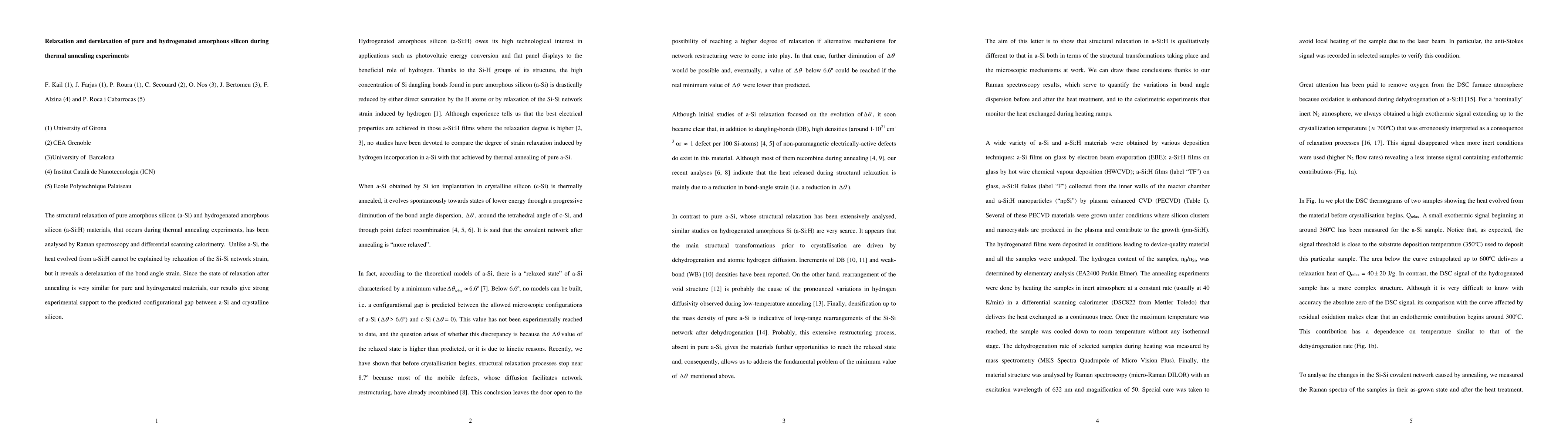 The research presents a detailed analysis of relaxation and derelaxation processes in pure and hydrogenated amorphous silicon using Raman spectroscopy and DSC, providing insights into the configurational gap between amorphous silicon and crystalline silicon.