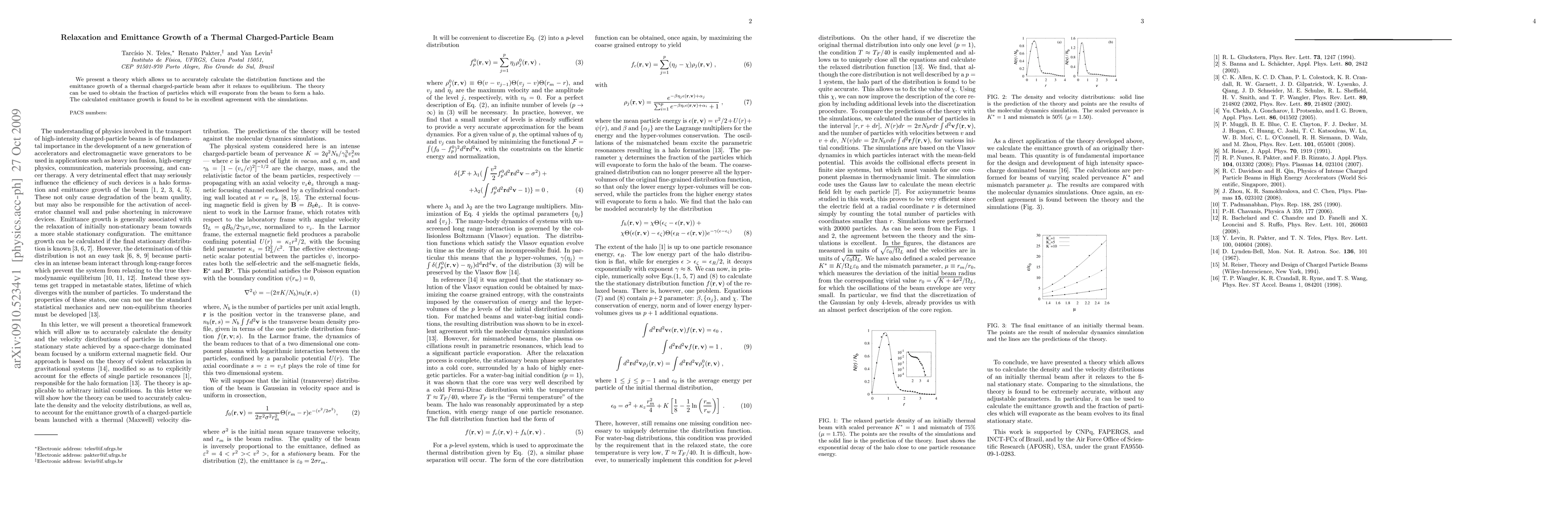 Researchers developed a theory to calculate the emittance growth of thermal charged-particle beams after relaxation, predicting particle evaporation and halo formation in excellent agreement with simulations.