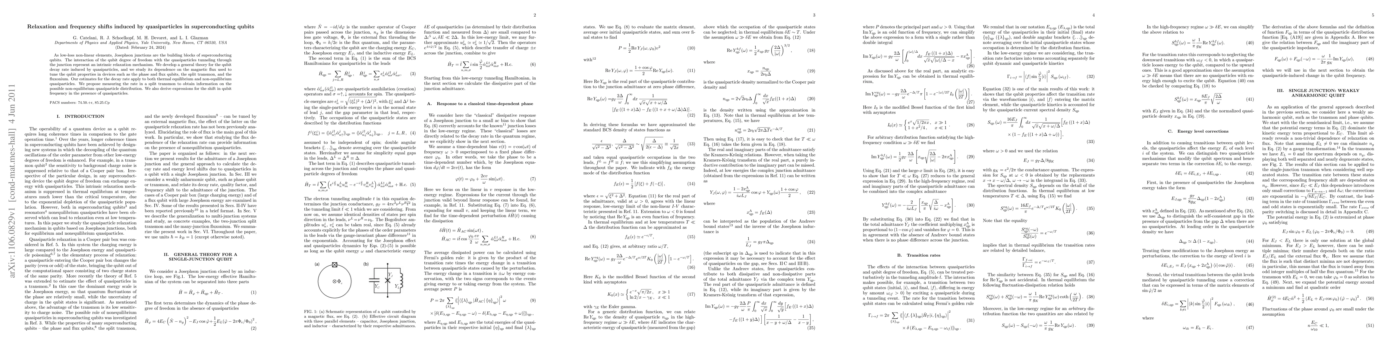 This paper develops a theoretical framework for understanding the relaxation and frequency shifts in superconducting qubits due to quasiparticles tunneling through Josephson junctions. The study provides estimates for qubit decay rates and frequency shifts under both thermal and non-equilibrium quasiparticle distributions, proposing split transmon measurements to infer quasiparticle distributions.