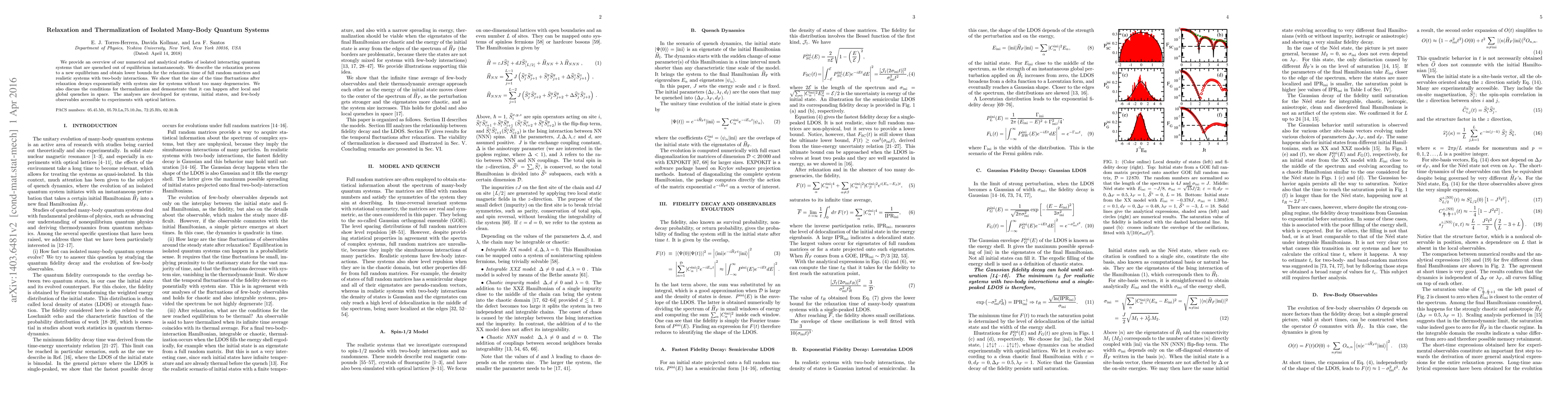 This paper reviews numerical and analytical studies on the relaxation and thermalization of isolated quantum systems after sudden equilibrium changes. It finds exponential decay in time fluctuations with system size and discusses conditions for thermalization following local or global quenches, relevant for experiments with optical lattices.