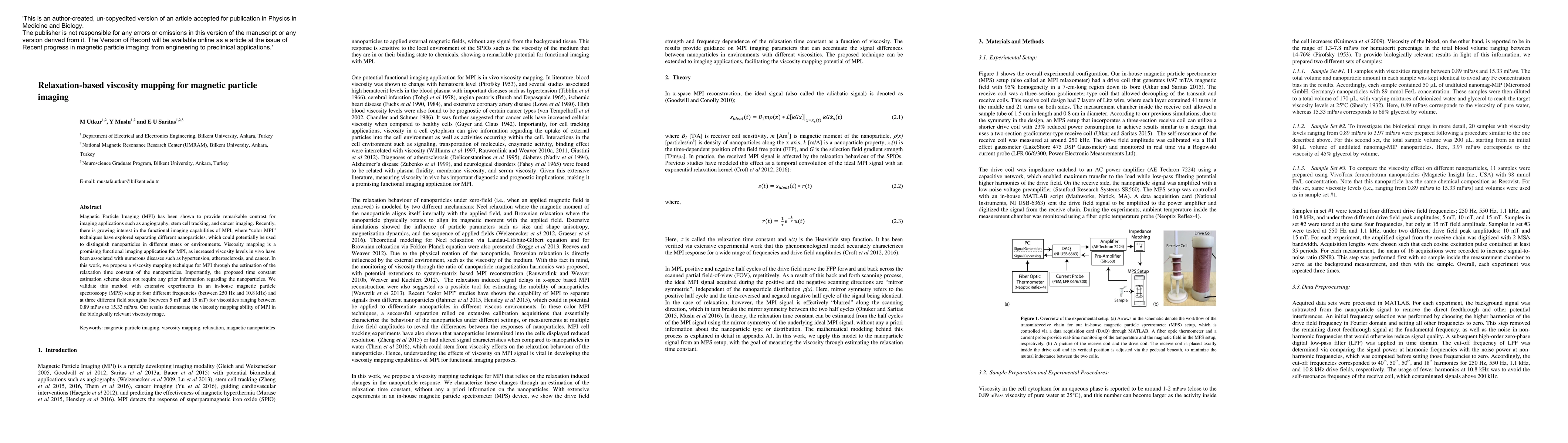 Magnetic Particle Imaging (MPI) has been shown to provide remarkable contrast for imaging applications such as angiography, stem cell tracking, and cancer imaging. Recently, there is growing interest in the functional imaging capabilities of MPI, where color MPI techniques have explored separating different nanoparticles, which could potentially be used to distinguish nanoparticles in different states or environments. Viscosity mapping is a promising functional imaging application for MPI, as increased viscosity levels in vivo have been associated with numerous diseases such as hypertension, atherosclerosis, and cancer. In this work, we propose a viscosity mapping technique for MPI through the estimation of the relaxation time constant of the nanoparticles. Importantly, the proposed time constant estimation scheme does not require any prior information regarding the nanoparticles. We validate this method with extensive experiments in an in-house magnetic particle spectroscopy (MPS) setup at four different frequencies (between 250 Hz and 10.8 kHz) and at three different field strengths (between 5 mT and 15 mT) for viscosities ranging between 0.89 mPa.s to 15.33 mPa.s. Our results demonstrate the viscosity mapping ability of MPI in the biologically relevant viscosity range.