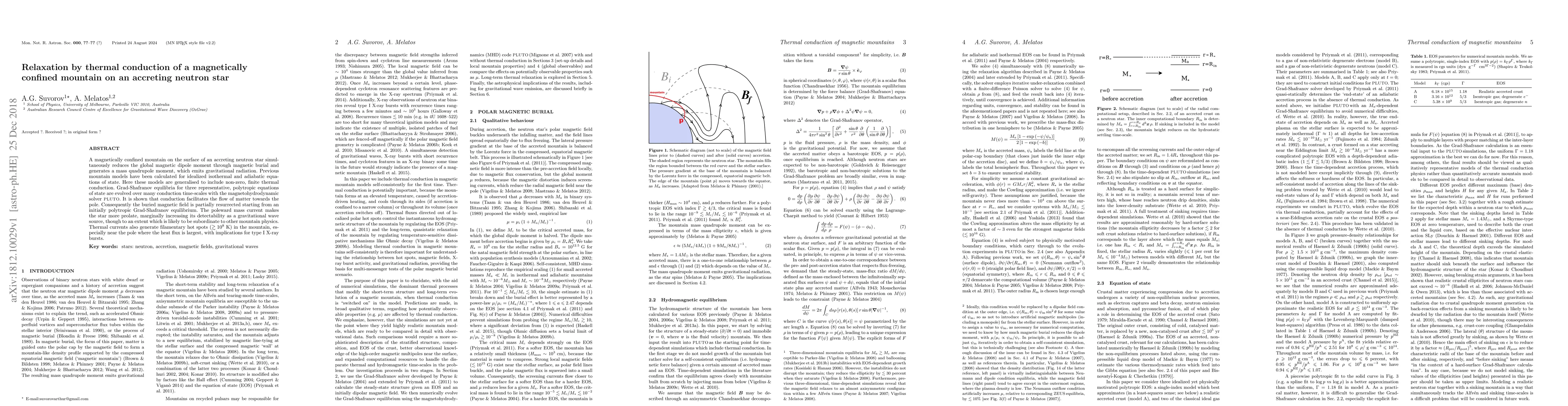 This paper investigates the relaxation dynamics of magnetically confined mountains on neutron stars, showing how thermal conduction influences the magnetic field burial process and gravitational radiation emission. Conduction enhances poleward matter flow, partially resurrecting the buried magnetic field and slightly increasing the star's gravitational wave detectability, while also generating hot spots with implications for X-ray bursts.