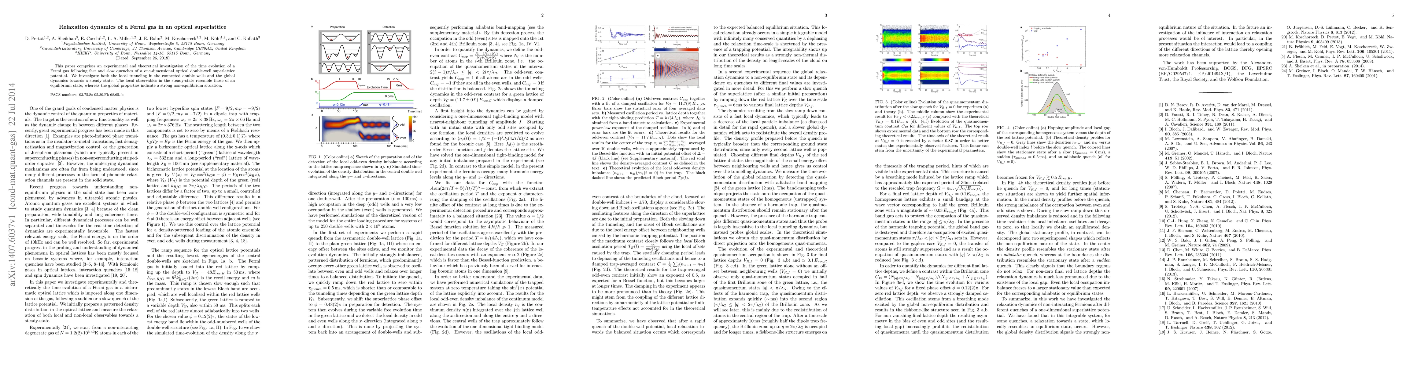 This paper comprises an experimental and theoretical investigation of the time evolution of a Fermi gas following fast and slow quenches of a one-dimensional optical double-well superlattice potential. We investigate both the local tunneling in the connected double wells and the global dynamics towards a steady state. The local observables in the steady-state resemble those of an equilibrium state, whereas the global properties indicate a strong non-equilibrium situation.