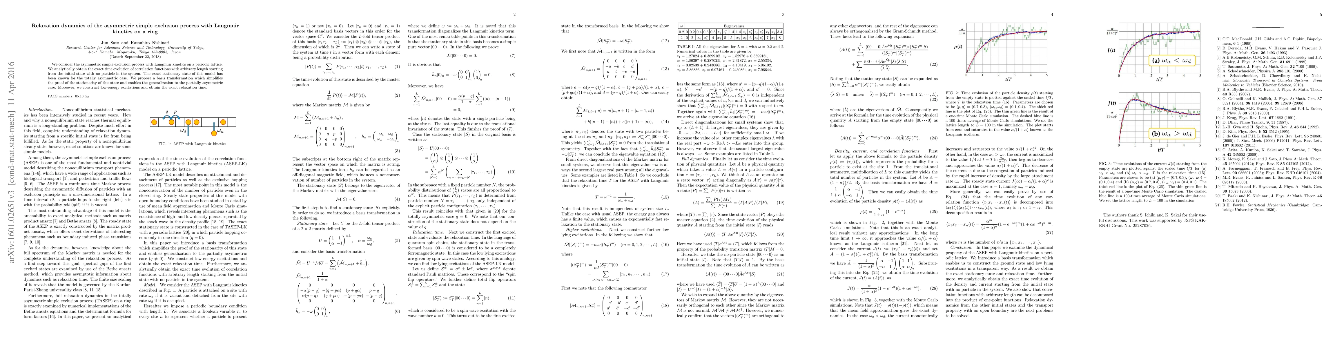 This paper analytically determines the time evolution of correlation functions for the asymmetric simple exclusion process with Langmuir kinetics on a ring. It proposes a basis transformation to simplify the proof of stationarity and generalizes the model to partially asymmetric cases, while also calculating the exact relaxation time.