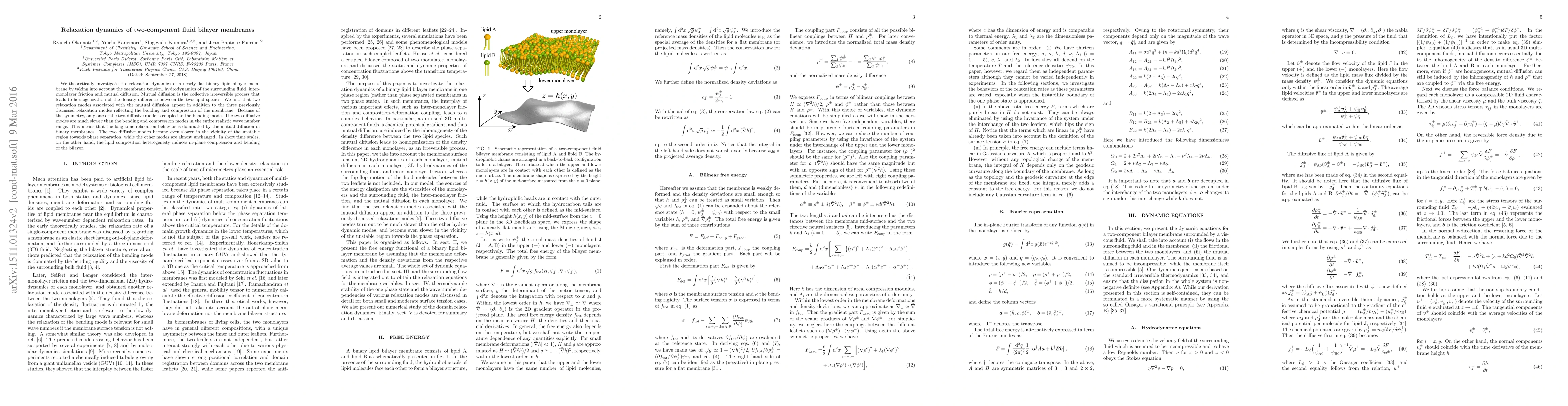 The paper presents a comprehensive theoretical analysis of relaxation modes in two-component fluid bilayer membranes, identifying new diffusive modes and their dominance in long-time relaxation.