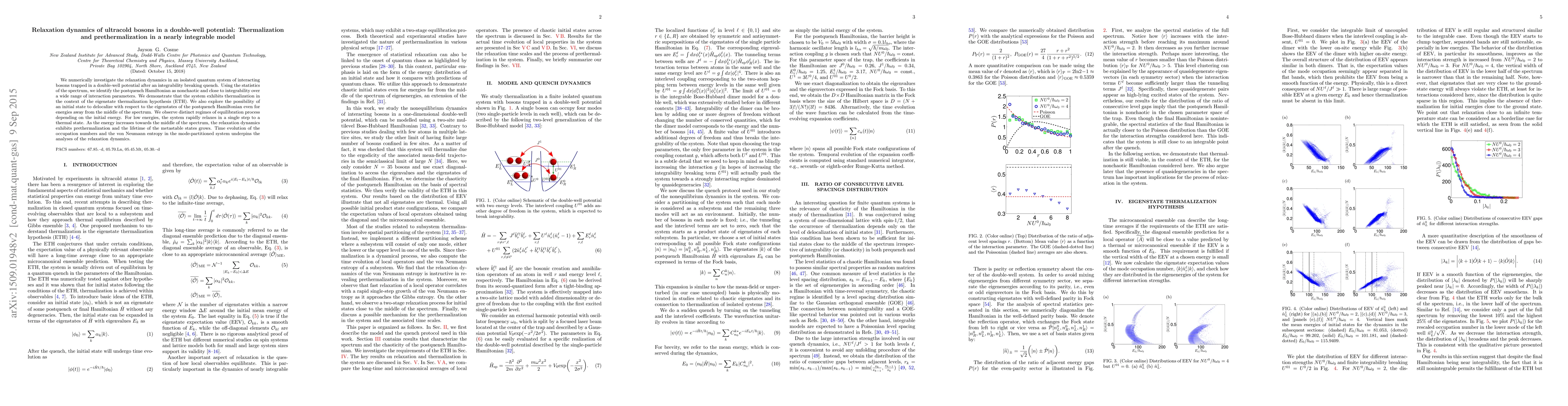 This paper numerically studies the relaxation dynamics of ultracold bosons in a double-well potential following an integrability-breaking quench. The system shows thermalization and prethermalization, with distinct equilibration regimes depending on initial energy, highlighting rapid relaxation for low energies and prolonged metastable states for higher energies.