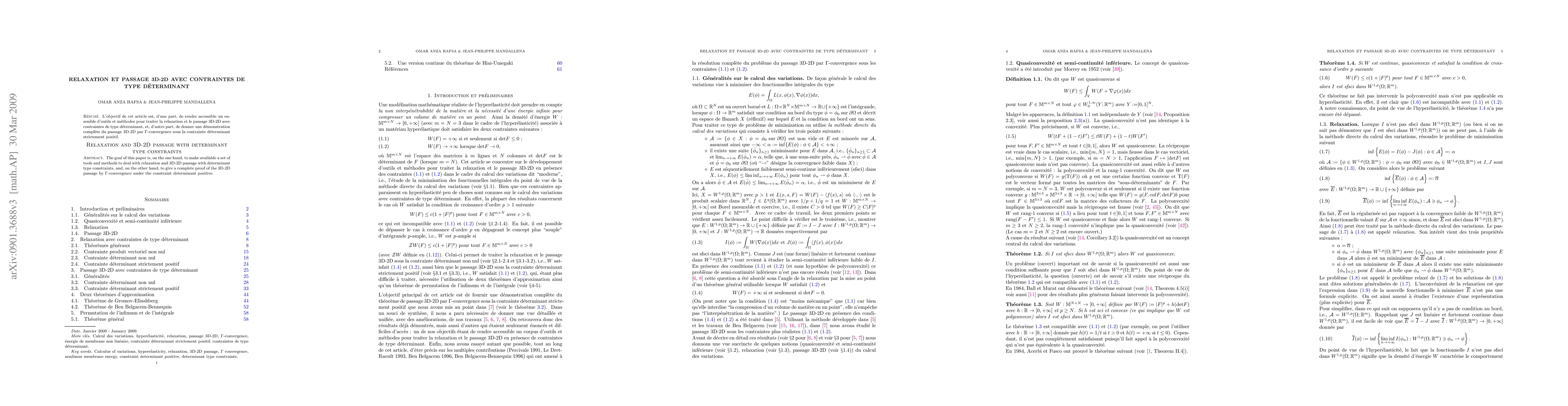 The goal of this paper is, on the one hand, to make available a set of tools and methods to deal with relaxation and 3D-2D passage with determinant type constraints, and, on the other hand, to give a complete proof of the 3D-2D passage by Gamma-convergence under the constraint determinant positive.