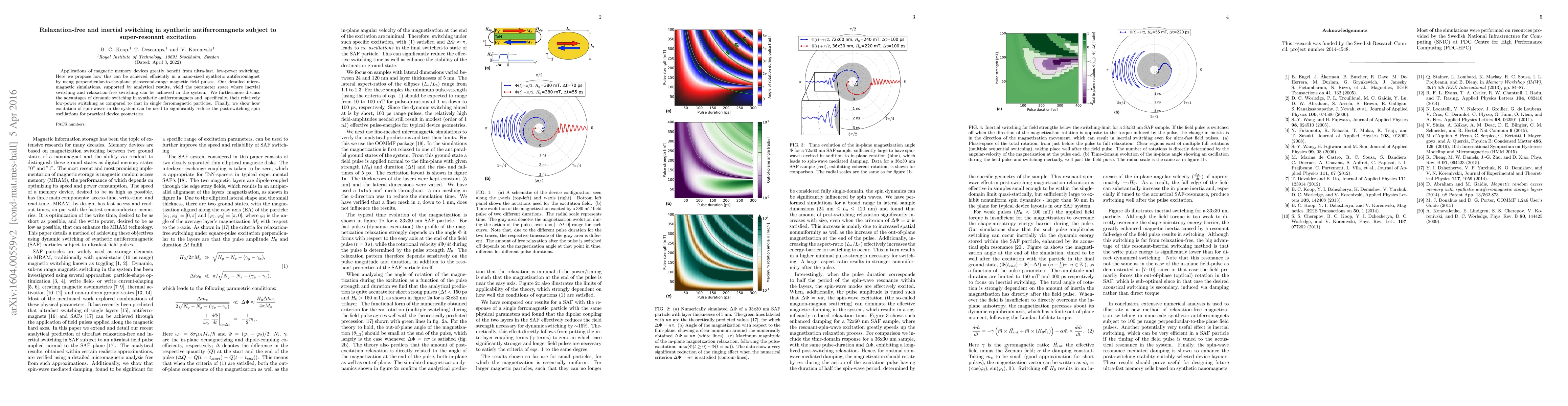 This paper proposes ultra-fast, low-power switching in nano-sized synthetic antiferromagnets using perpendicular picosecond magnetic field pulses, achieving inertial and relaxation-free switching through micromagnetic simulations and analytical results. It highlights the benefits of dynamic switching, including low power consumption compared to single ferromagnetic particles.