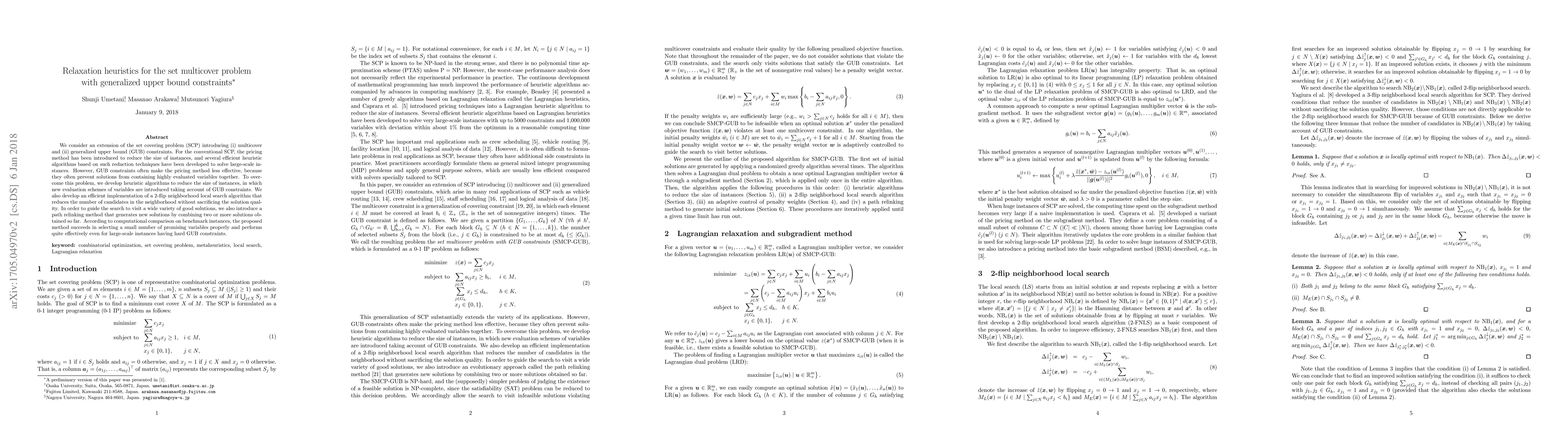 This paper develops relaxation heuristics to solve a variant of the set multicover problem with generalized upper bound constraints, proposing an efficient algorithm that effectively selects promising variables and performs well on large-scale instances.