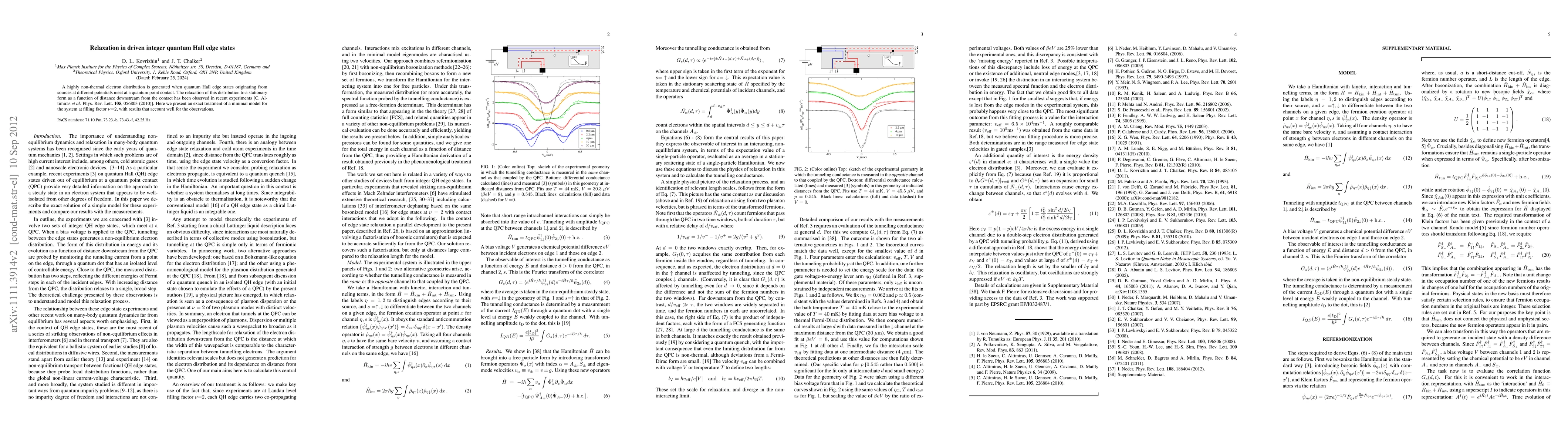 This paper investigates the relaxation dynamics of a non-thermal electron distribution in driven integer quantum Hall edge states, demonstrating an exact treatment of a minimal model at filling factor ν=2 that aligns well with experimental observations.