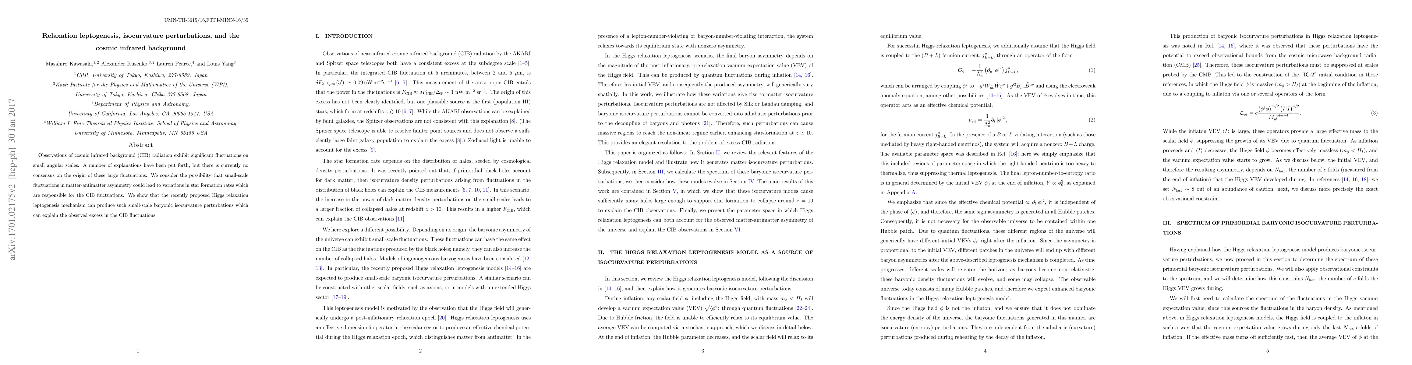 This paper explores how small-scale fluctuations in matter-antimatter asymmetry from Higgs relaxation leptogenesis could generate baryonic isocurvature perturbations, leading to variations in star formation rates and explaining the observed fluctuations in cosmic infrared background radiation.