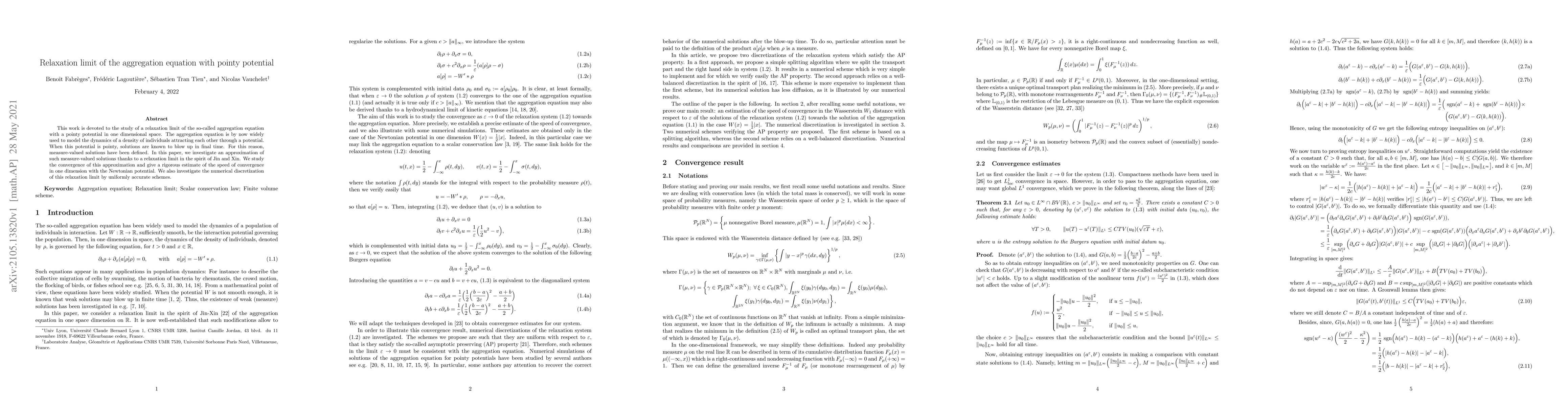 This work is devoted to the study of a relaxation limit of the so-called aggregation equation with a pointy potential in one dimensional space. The aggregation equation is by now widely used to model the dynamics of a density of individuals attracting each other through a potential. When this potential is pointy, solutions are known to blow up in final time. For this reason, measure-valued solutions have been defined. In this paper, we investigate an approximation of such measure-valued solutions thanks to a relaxation limit in the spirit of Jin and Xin. We study the convergence of this approximation and give a rigorous estimate of the speed of convergence in one dimension with the Newtonian potential. We also investigate the numerical discretization of this relaxation limit by uniformly accurate schemes.