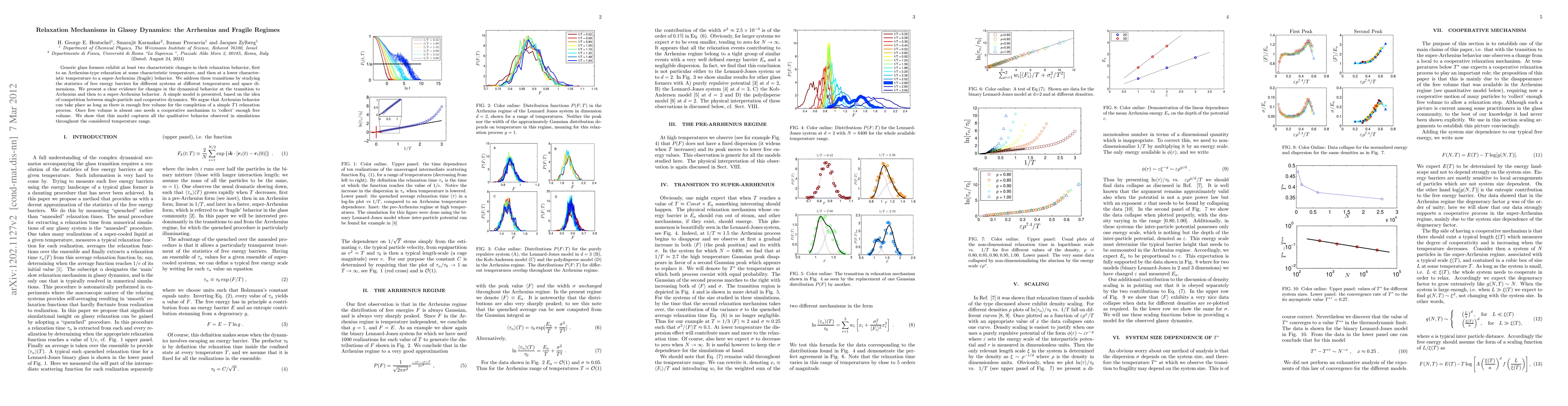 Generic glass formers exhibit at least two characteristic changes in their relaxation behavior, first to an Arrhenius-type relaxation at some characteristic temperature, and then at a lower characteristic temperature to a super-Arrhenius (fragile) behavior. We address these transitions by studying the statistics of free energy barriers for different systems at different temperatures and space dimensions. We present a clear evidence for changes in the dynamical behavior at the transition to Arrhenius and then to a super-Arrhenius behavior. A simple model is presented, based on the idea of competition between single-particle and cooperative dynamics. We argue that Arrhenius behavior can take place as long as there is enough free volume for the completion of a simple $T_1$ relaxation process. Once free volume is absent one needs a cooperative mechanism to `collect' enough free volume. We show that this model captures all the qualitative behavior observed in simulations throughout the considered temperature range.
