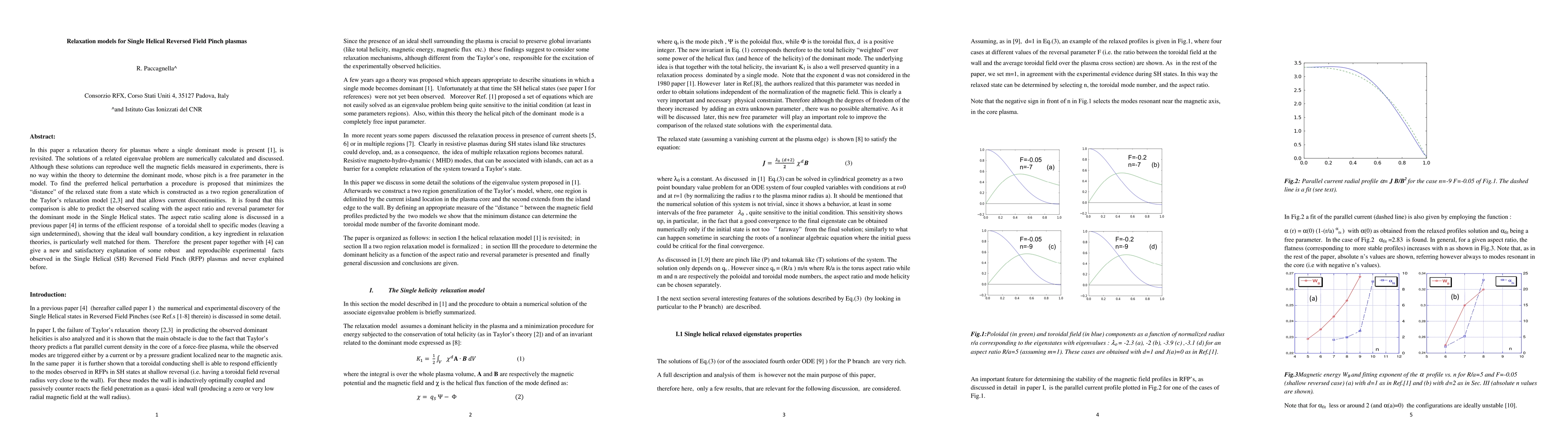 In this paper a relaxation theory, proposed several years ago for plasmas where a single dominant mode is present, is revisited. The solutions of the related eigenvalue problem are numerically calculated and discussed. Although these solutions are very rich and can reproduce well the magnetic fields measured in experiments, there is no manner within the theory to determine the dominant helicity, which is a free parameter in the model. To find the preferred helicity in the system, we propose to minimize the distance of the relaxed state from another state which is constructed as a two region generalization of the Taylor relaxation model allowing current jumps. It is found that this comparison is able to predict the observed scaling with the aspect ratio and reversal parameter for the dominant mode in the Single Helical states.