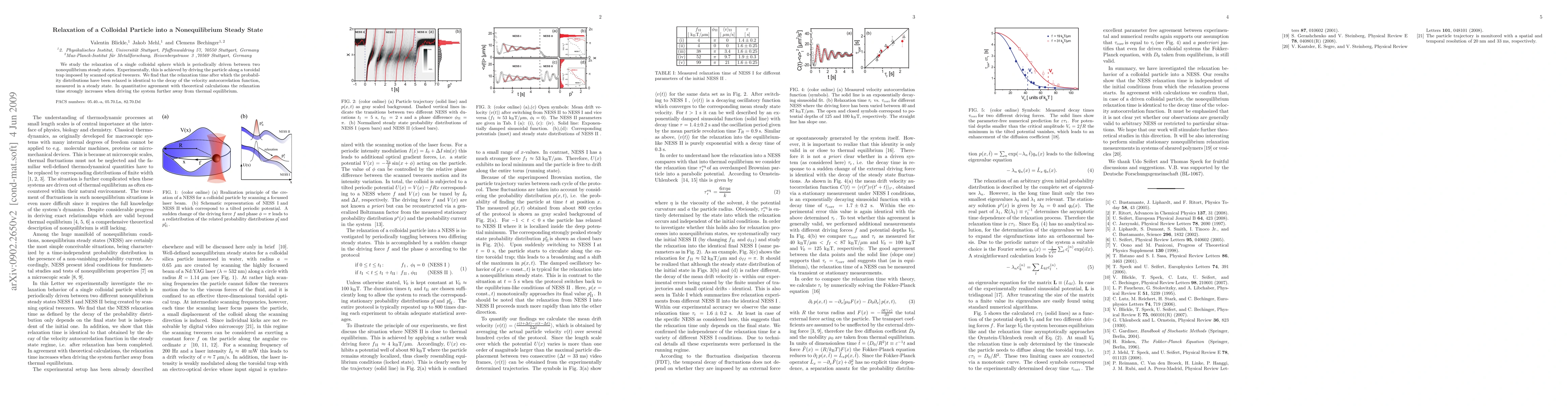 We study the relaxation of a single colloidal sphere which is periodically driven between two nonequilibrium steady states. Experimentally, this is achieved by driving the particle along a toroidal trap imposed by scanned optical tweezers. We find that the relaxation time after which the probability distributions have been relaxed is identical to that obtained by a steady state measurement. In quantitative agreement with theoretical calculations the relaxation time strongly increases when driving the system further away from thermal equilibrium.