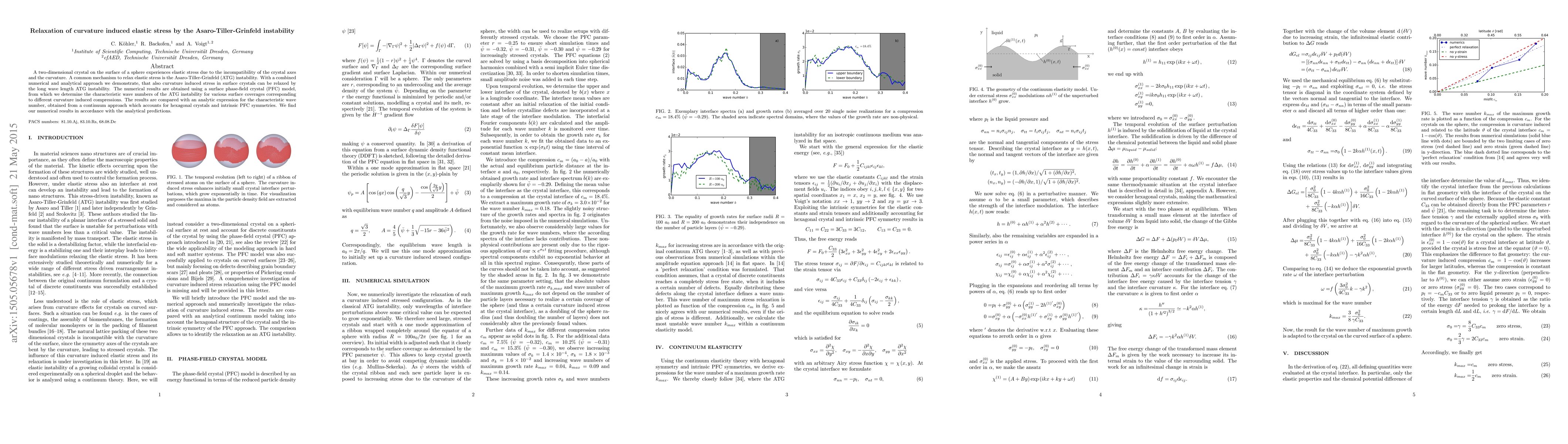 Research finds that curvature-induced elastic stress in surface crystals can be relaxed by the Asaro-Tiller-Grinfeld instability, with numerical and analytical results supporting this discovery.