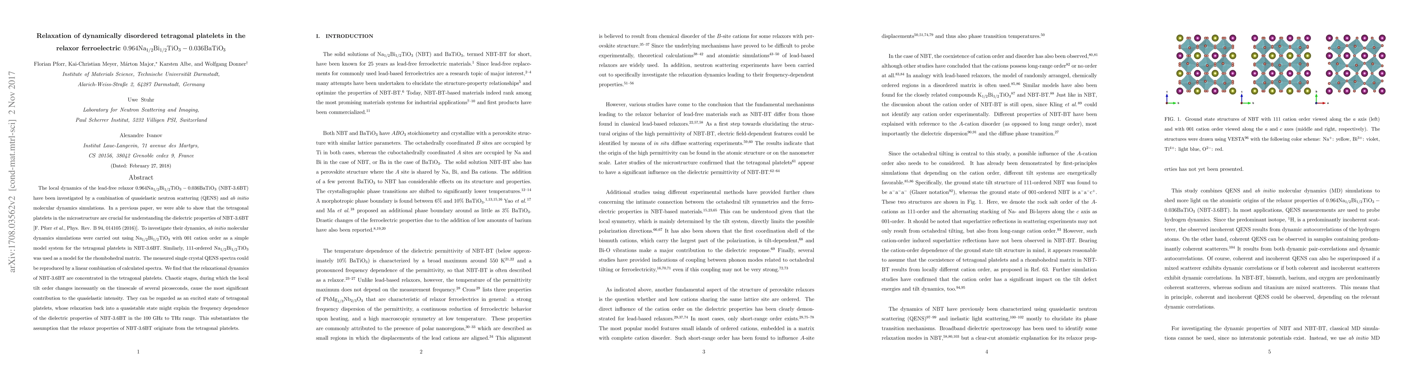 This study investigates the local dynamics of lead-free relaxor ferroelectric NBT-3.6BT using quasielastic neutron scattering and ab initio molecular dynamics simulations. The research finds that the relaxational dynamics are concentrated in tetragonal platelets, with chaotic stages contributing significantly to the quasielastic intensity, which explains the frequency dependence of the material's dielectric properties.