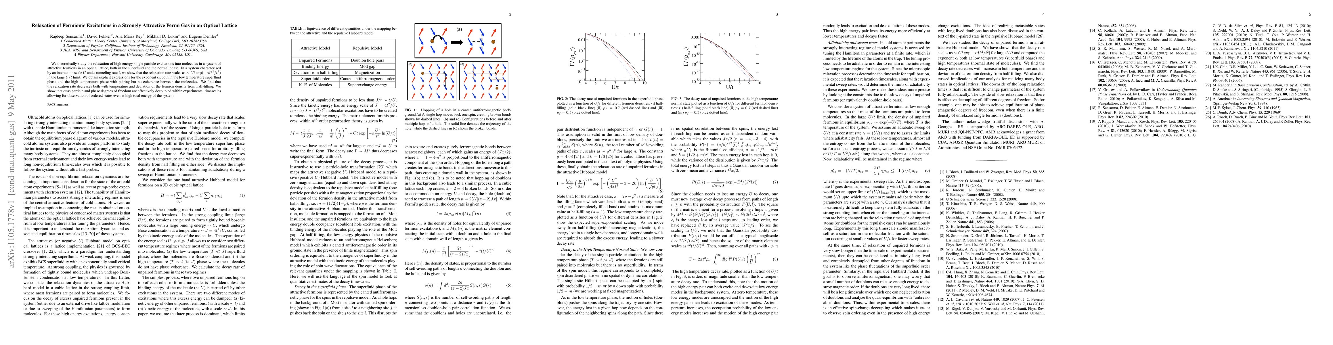 We theoretically study the relaxation of high energy single particle excitations into molecules in a system of attractive fermions in an optical lattice, both in the superfluid and the normal phase. In a system characterized by an interaction scale $U$ and a tunneling rate $t$, we show that the relaxation rate scales as $\sim Ct\exp(-\alpha U^2/t^2)$ in the large $U/t$ limit. We obtain explicit expressions for the exponent $\alpha$, both in the low temperature superfluid phase and the high temperature phase with pairing but no coherence between the molecules. We find that the relaxation rate decreases both with temperature and deviation of the fermion density from half-filling. We show that quasiparticle and phase degrees of freedom are effectively decoupled within experimental timescales allowing for observation of ordered states even at high total energy of the system.