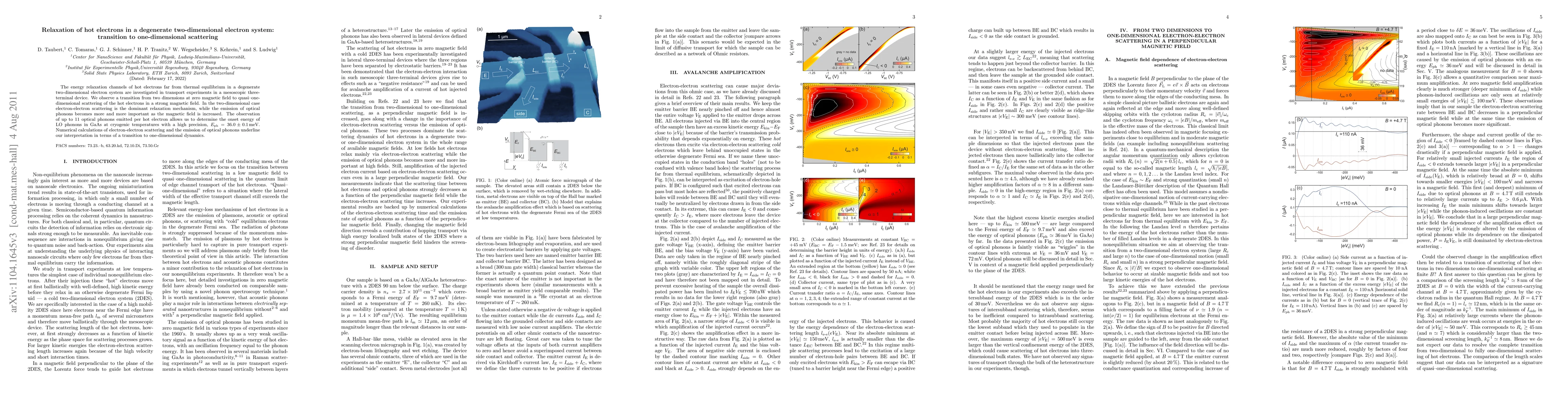 The energy relaxation channels of hot electrons far from thermal equilibrium in a degenerate two-dimensional electron system are investigated in transport experiments in a mesoscopic three-terminal device. We observe a transition from two dimensions at zero magnetic field to quasi--one-dimensional scattering of the hot electrons in a strong magnetic field. In the two-dimensional case electron-electron scattering is the dominant relaxation mechanism, while the emission of optical phonons becomes more and more important as the magnetic field is increased. The observation of up to 11 optical phonons emitted per hot electron allows us to determine the onset energy of LO phonons in GaAs at cryogenic temperatures with a high precision, $\eph=36.0\pm0.1\,$meV. Numerical calculations of electron-electron scattering and the emission of optical phonons underline our interpretation in terms of a transition to one-dimensional dynamics.