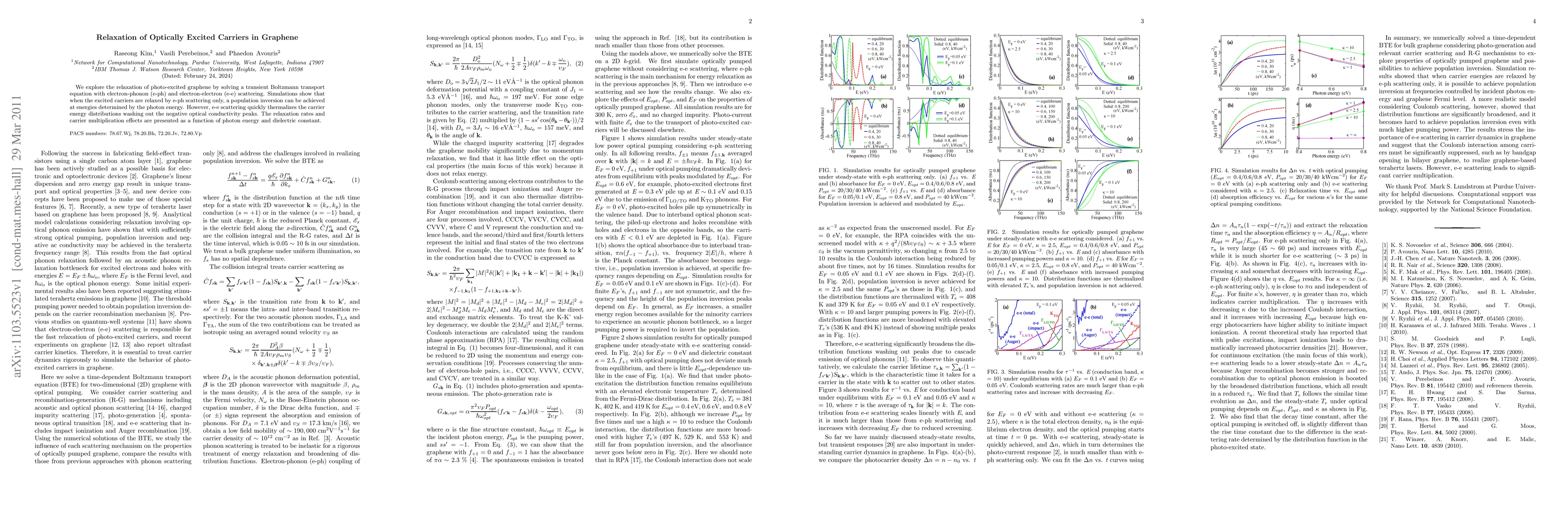 This study investigates the relaxation dynamics of optically excited carriers in graphene using a transient Boltzmann transport equation, revealing that electron-phonon scattering can create population inversions, while electron-electron scattering thermalizes carrier energy distributions, eliminating the negative optical conductivity peaks. The research also examines the effects of photon energy and dielectric constant on relaxation rates and carrier multiplication.