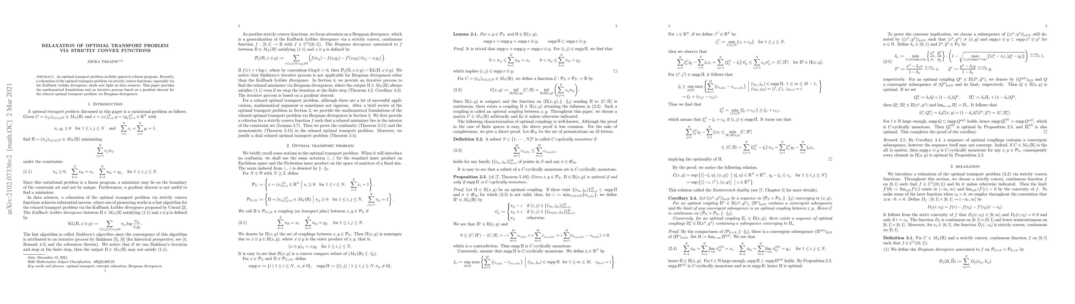 This paper establishes the mathematical framework for a relaxed optimal transport problem using strictly convex functions, particularly the Kullback-Leibler divergence, and proposes an iterative gradient descent method based on Bregman divergences for its solution.