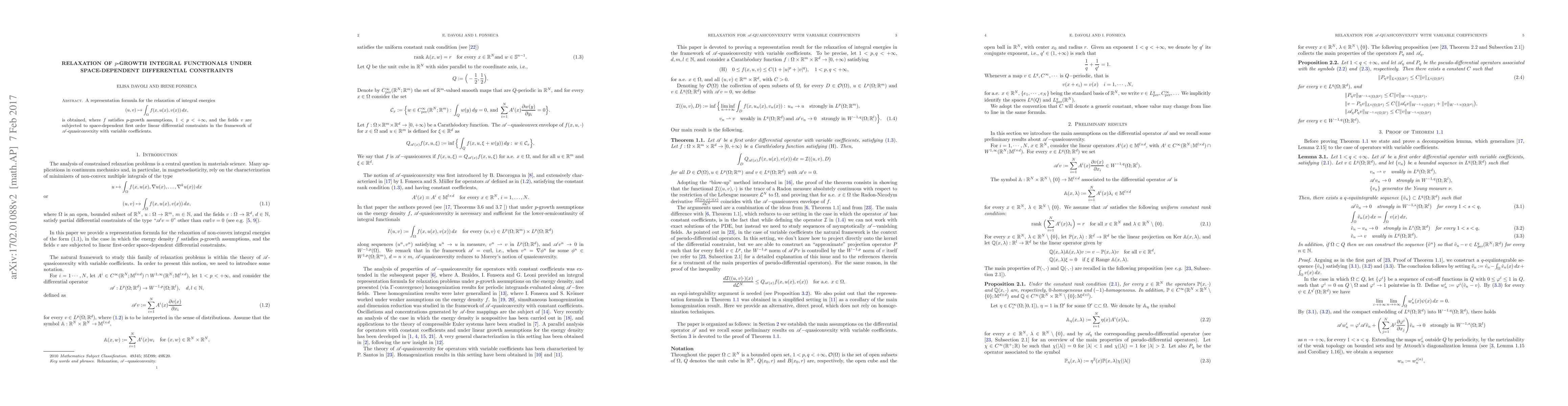 This paper provides a representation formula for the relaxation of $p$-growth integral functionals under space-dependent differential constraints, utilizing $\mathscr{A}$-quasiconvexity with variable coefficients. The study focuses on the optimization of integral energies subject to specified constraints.