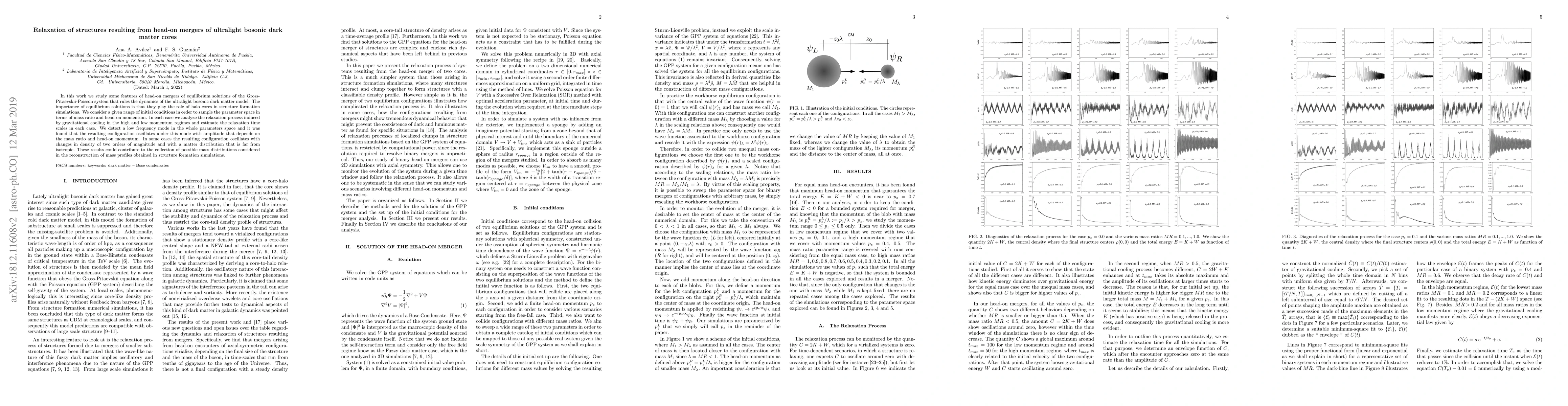 Researchers studied head-on mergers of ultralight bosonic dark matter cores, finding a common low-frequency mode that causes configurations to oscillate with significant changes in density and shape.