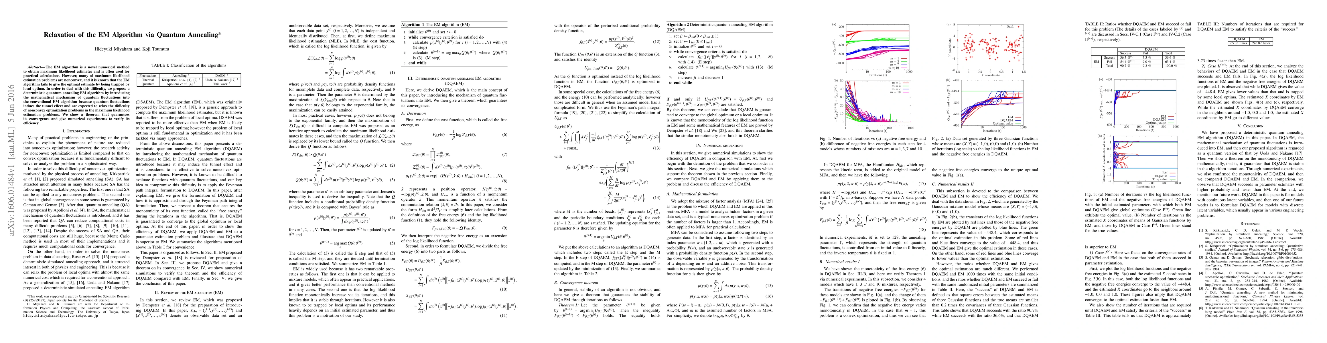 The paper proposes a quantum annealing EM algorithm to address the EM algorithm's failure to find optimal estimates due to local optima in nonconvex optimization problems. The method incorporates quantum fluctuations to induce the tunnel effect, enhancing the relaxation of nonconvex optimization issues, with a convergence theorem and numerical experiments validating its efficiency.