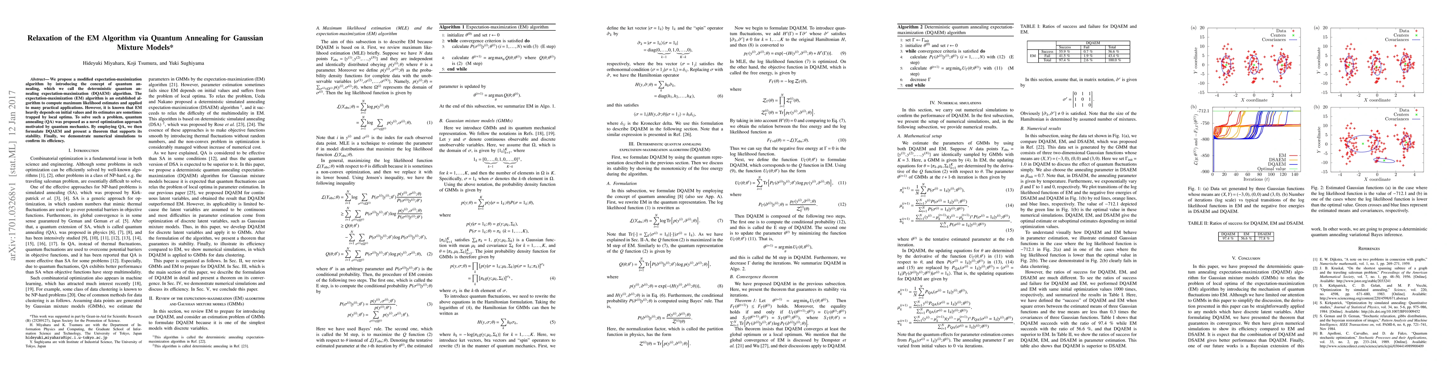 This paper proposes a modified expectation-maximization algorithm called the deterministic quantum annealing expectation-maximization (DQAEM) algorithm, which integrates quantum annealing to improve the EM algorithm's stability and escape local optima. Numerical simulations confirm the efficiency of the new approach.