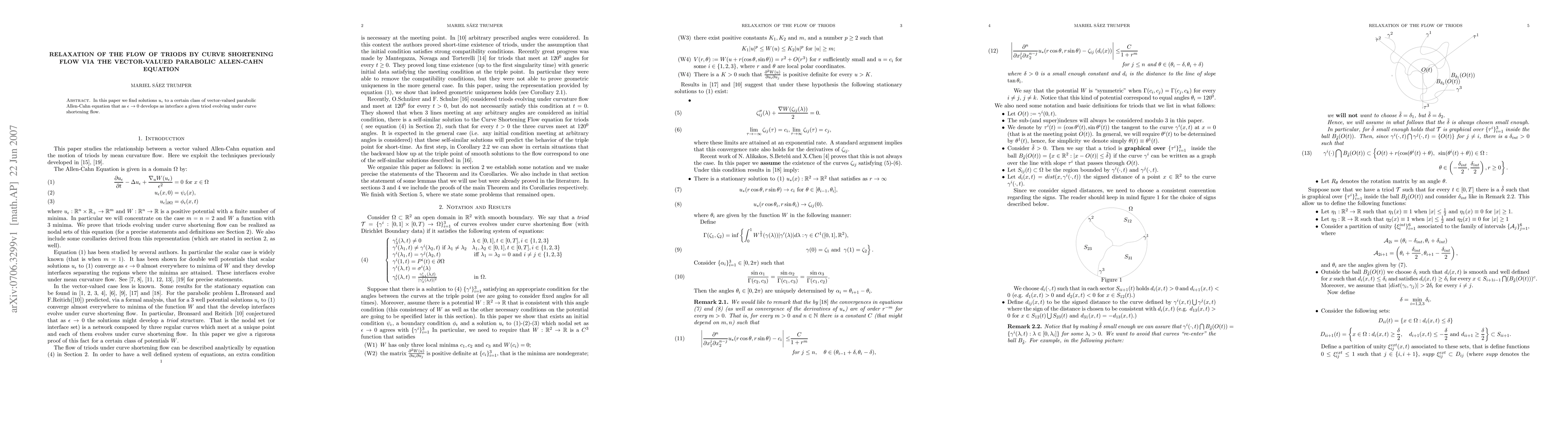 This paper investigates solutions $u_\epsilon$ to a vector-valued parabolic Allen-Cahn equation, which describe the relaxation of triod interfaces evolving under curve shortening flow as $\epsilon \to 0$.