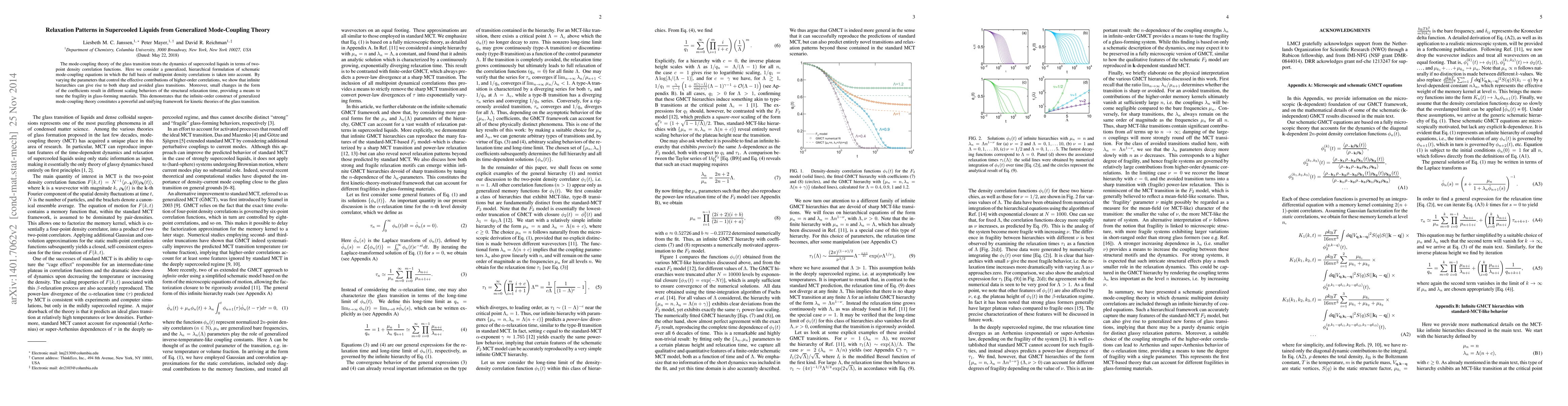This paper presents a generalized mode-coupling theory that accounts for multipoint density correlations to model the dynamics of supercooled liquids. It reveals that varying parameters in the theory can lead to different types of glass transitions and fragility, showcasing the framework's potential to unify kinetic theories of the glass transition.