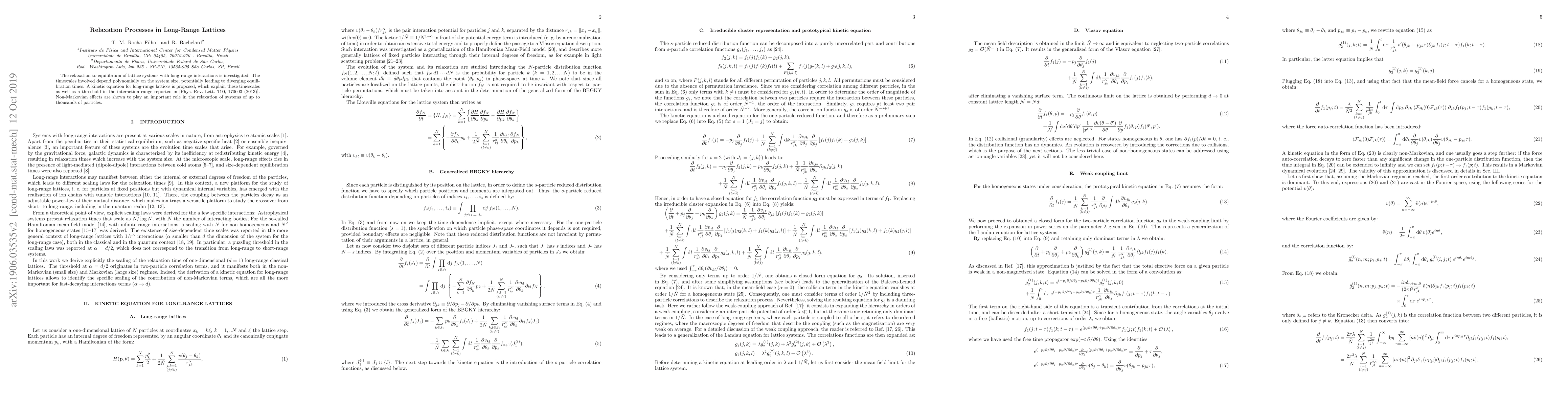This paper investigates how long-range interactions in lattice systems affect their relaxation to equilibrium, finding that equilibration times can diverge with system size due to non-Markovian effects.