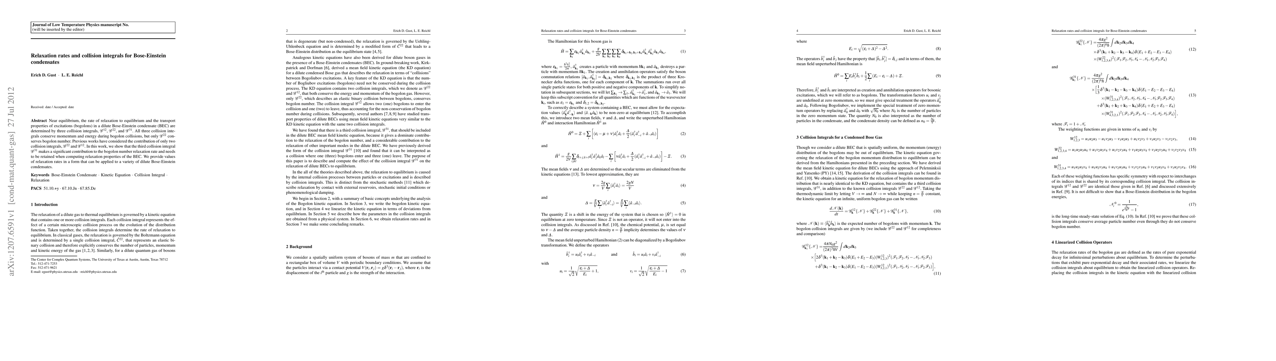 This paper investigates the relaxation rates and transport properties of excitations in a dilute Bose-Einstein condensate, highlighting the significant contribution of the third collision integral $\mathcal{G}^{31}$ to bogolon number relaxation. It provides values for relaxation rates applicable to a range of BECs.